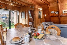 Gemütliches großes Wohnzimmer mit Essplatz, Sat-TV, Disney Plus, Ausgang zur Terrasse.