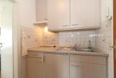 Kühlschrank, Wasserkocher, Kaffeemaschine, Toaster, 2-Plattenherd, Ceran-Kochfeld, Geschirr