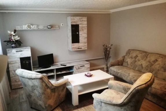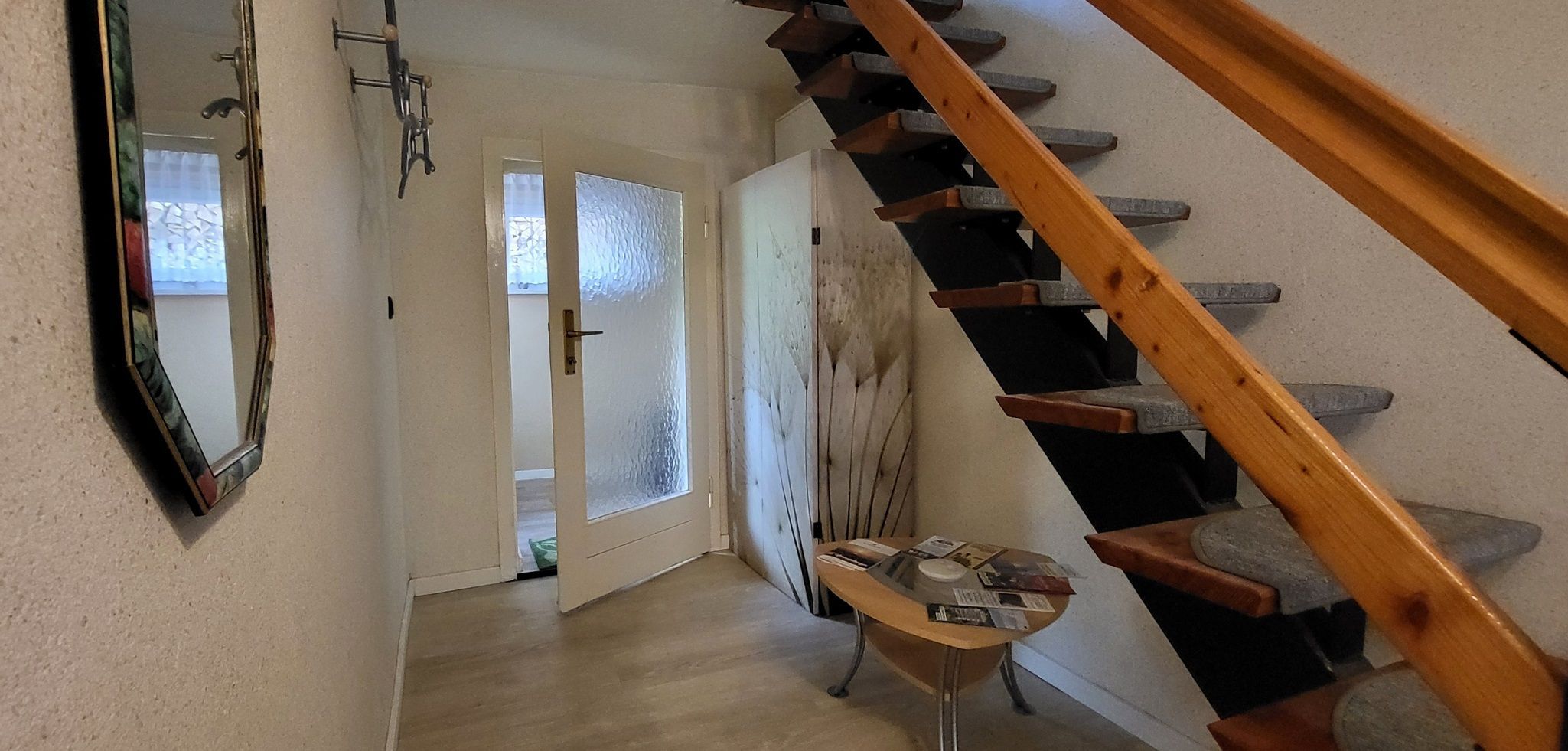 Die modern eingerichtete Nichtraucher-Ferienwohnung wurde 2020 renoviert und befindet sich im Souterrain im Wohnhaus des Vermieters. Sie ist hell und freundlich und verfügt mit ihren 60 m² über eine Küche, einen Wohnraum mit Essecke und Schlafcouch, einen Schlafraum mit einem Doppelbett und eine Sitzecke mit Grillmöglichkeit im Garten. Der Parkplatz befindet sich am Haus. Die Wohnung hat einen separaten Eingang. Die Erstausstattung Bettwäsche ist inklusive, Handtücher bringen Sie bitte selbst mit. Bis zum Strand sind es ca. 20 Minuten zu Fuß. Haustiere sind bei uns nicht erlaubt.