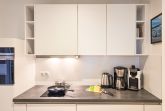 • Küche: Separate, voll ausgestattete Küche mit Backofen, Kochfeld, Mikrowelle, Kühlschrank, Geschirrspüler, Filterkaffeemaschine und Pad-Kaffeemaschine