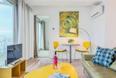 Dieses stilvolle Apartment im 6. Obergeschoss bietet auf 47 m² Platz für bis zu 2 Personen und besticht durch einen atemberaubenden Blick auf den Barther Bodden.