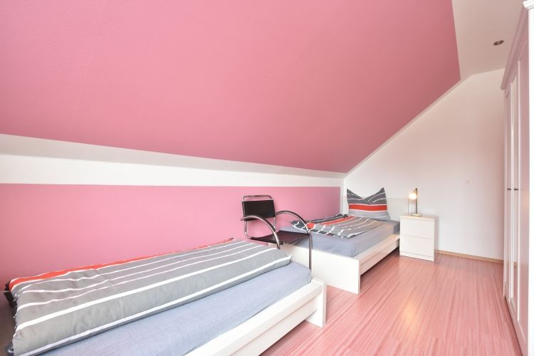 Im Erdgeschoss befinden sich zwei Schlafzimmer, ein Zwei- und ein Dreibettzimmer (ein Einzelbett und ein Stockbett). Im ersten Stock gibt es drei weitere Zweibettzimmer sowie einen Wohn-/ Fernsehraum. Dieser kann als zusätzliches Wohnzimmer genutzt werden.