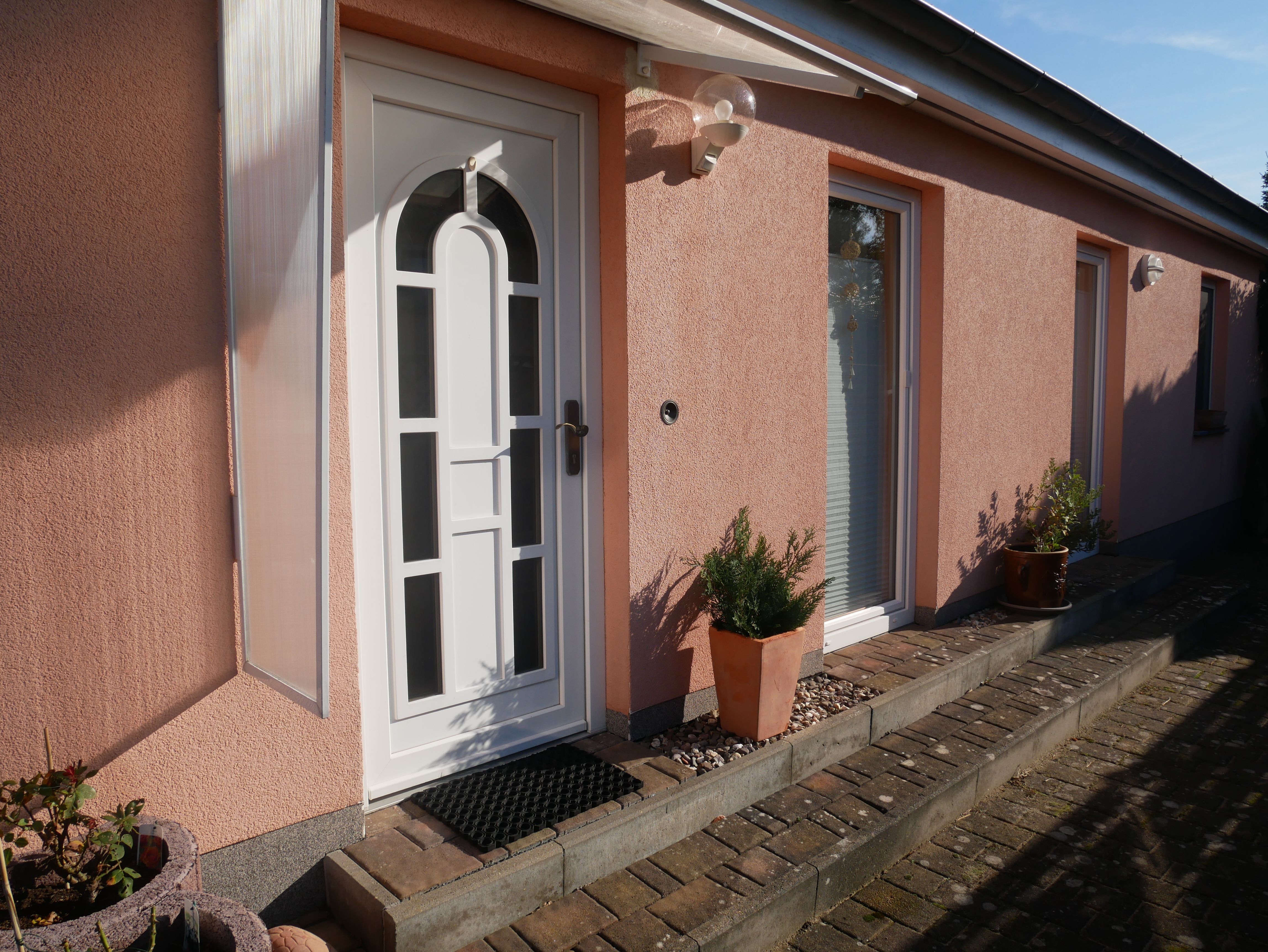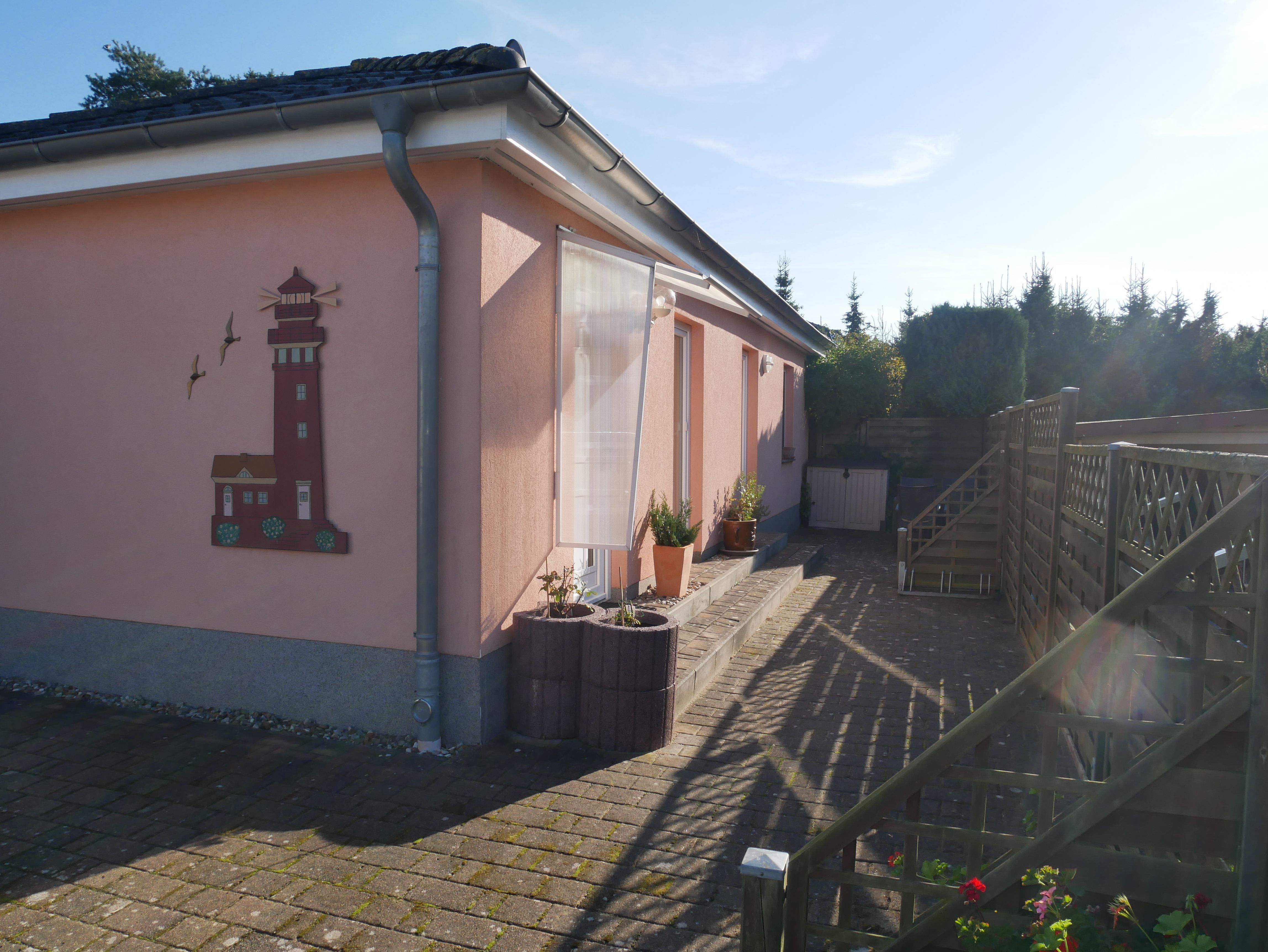 Die Ferienwohnung Leuchtturm im Bungalowstil befindet sich am Ortsrand des Ostseebades Zinnowitz auf dem Grundstück der Vermieter.