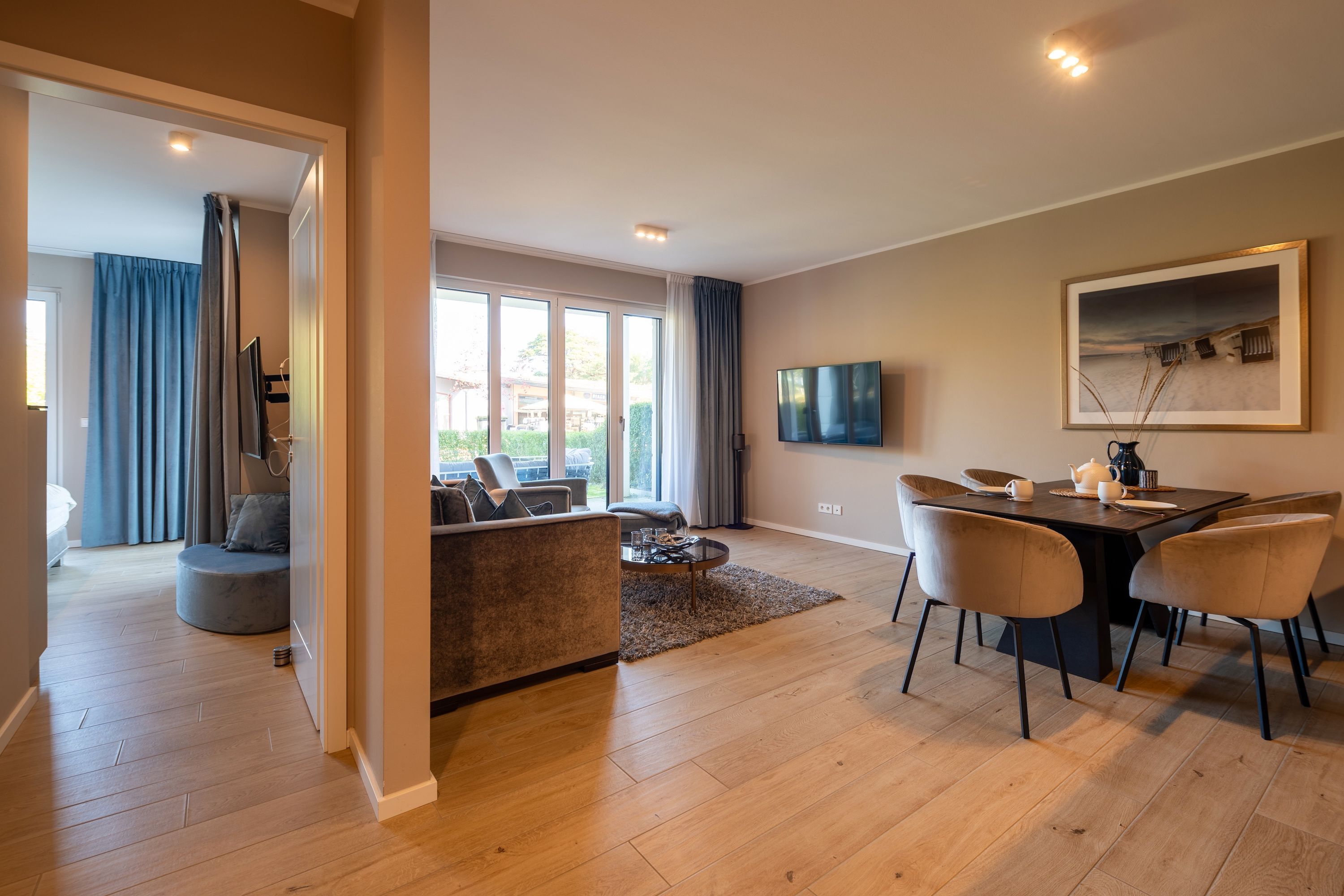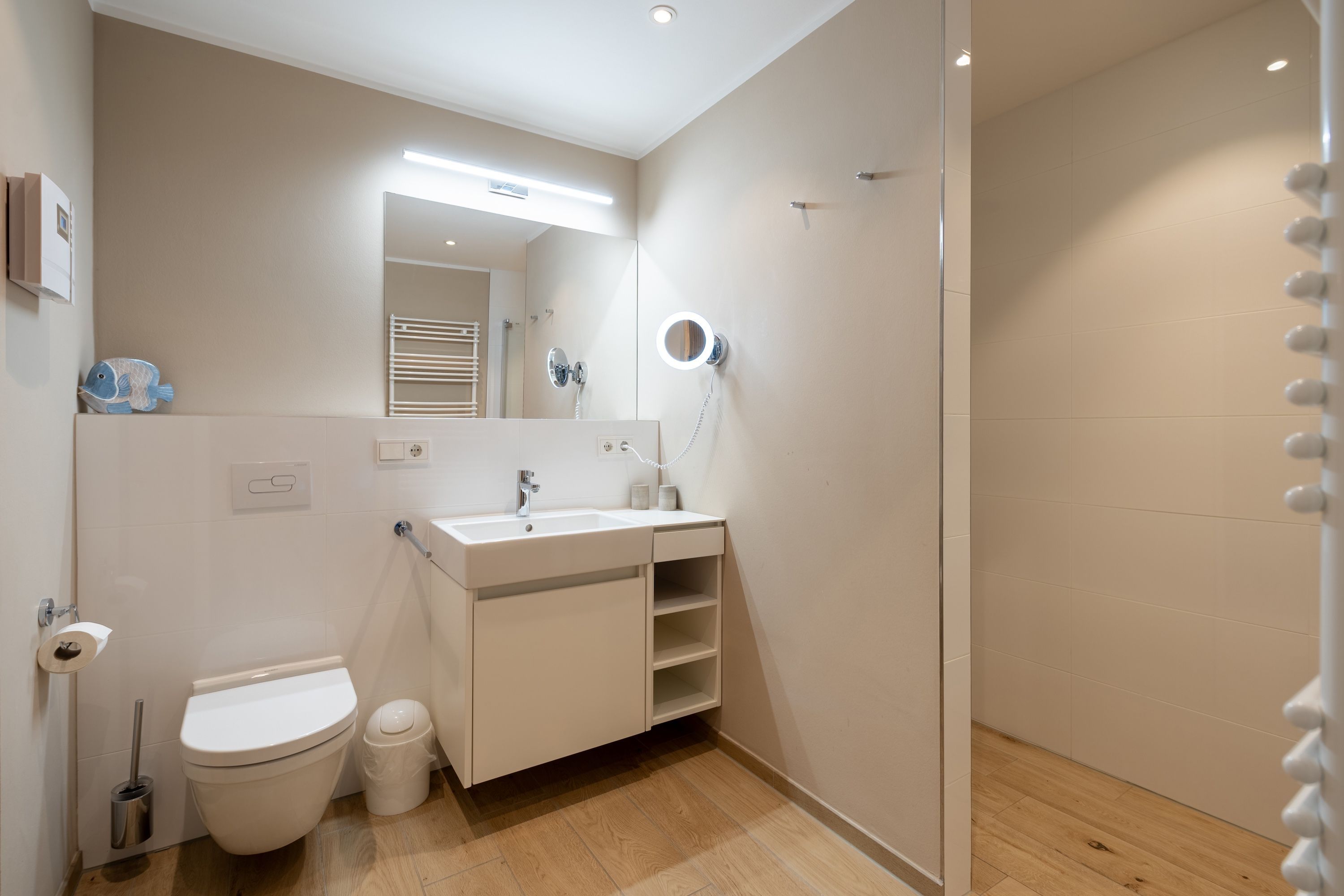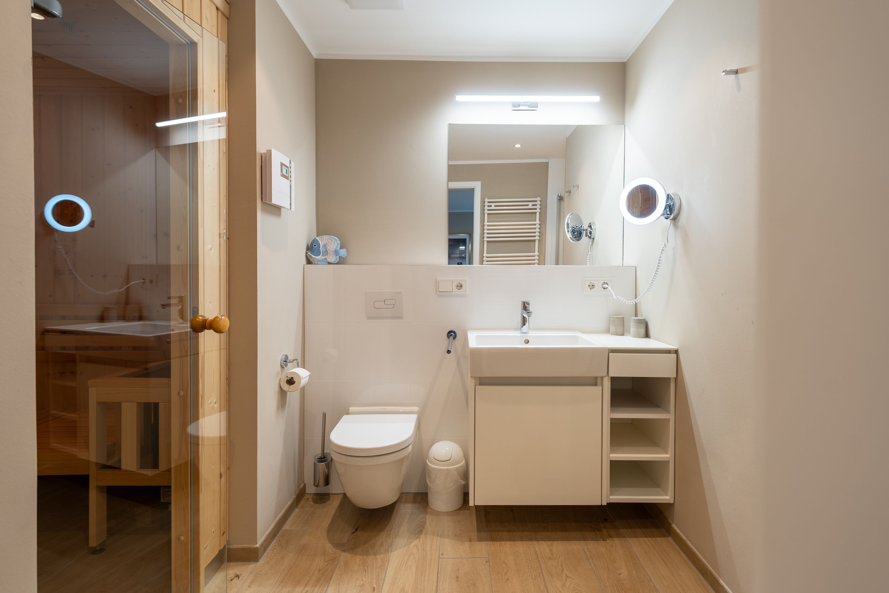 Zur Ausstattung gehören ein eigener Tiefgaragenstellplatz mit E-Ladestation und ein abschließbarer Fahrradkeller. Zudem können Sie während Ihres Aufenthalts kostenlos WLAN/Internet nutzen und sich nach einem erlebnisreichen Tag in unserer Sauna entspannen. Zudem stehen Ihnen in der Anlage Waschmaschinen und Trockner zur Verfügung, damit Sie auch während Ihres Urlaubs bequem Ihre Wäsche erledigen können.