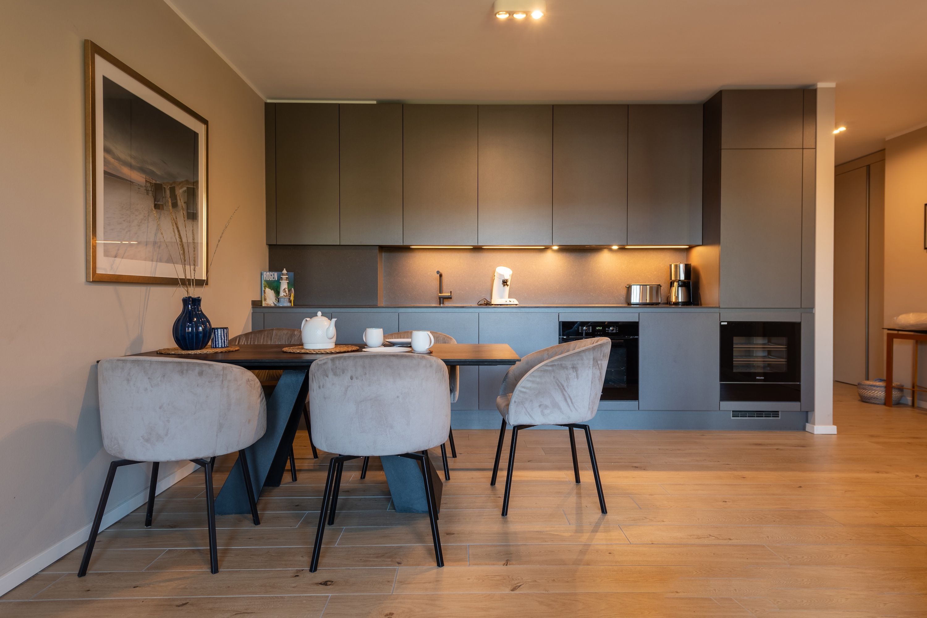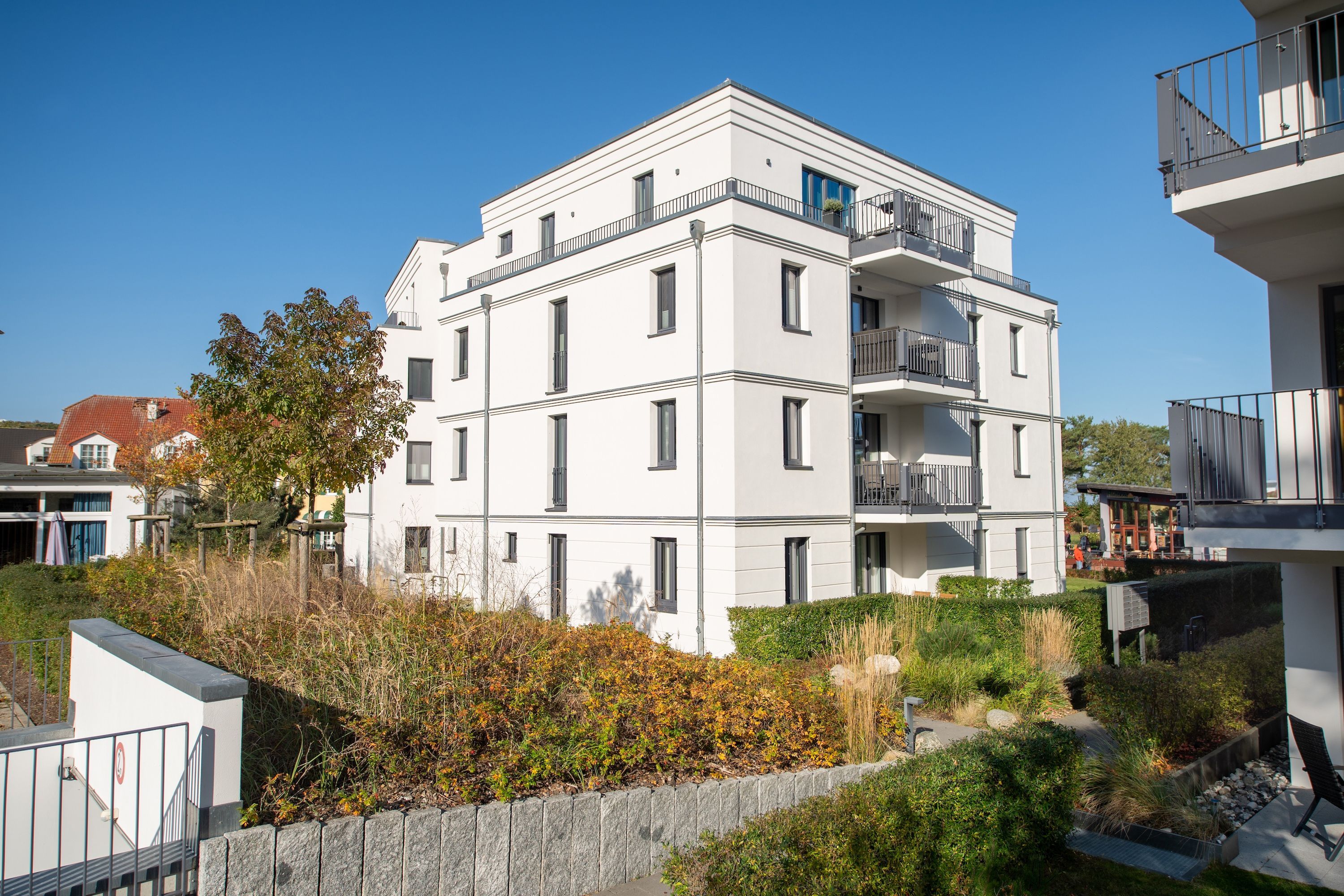 Der Strand ist nur ca. 150 m entfernt perfekt für Spaziergänge oder einen Tag am Meer. Ein Wander- und Radweg ist nach etwa 290 m erreichbar. Die nächste Bushaltestelle sowie der Rasende Roland sind etwa 850 m entfernt und bieten Ihnen eine tolle Möglichkeit, die Umgebung zu erkunden.