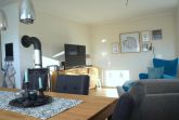 Der großzügige Wohn-/Essbereich ist hochwertig eingerichtet und mit LED-TV, Blue-ray-Hifi-Anlage und Kaminofen sowie einer kompletten Einbauküche ausgestattet.