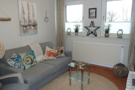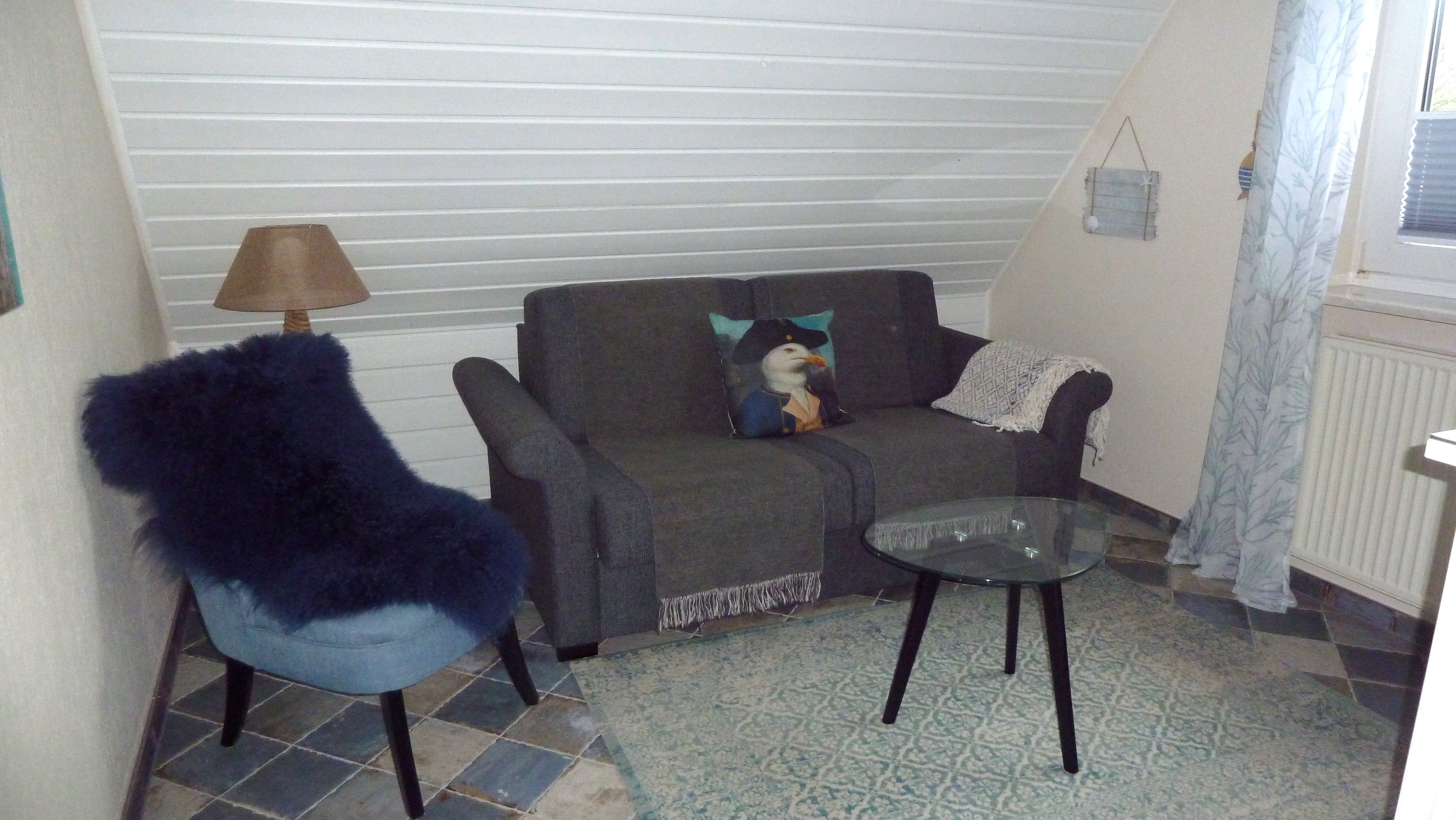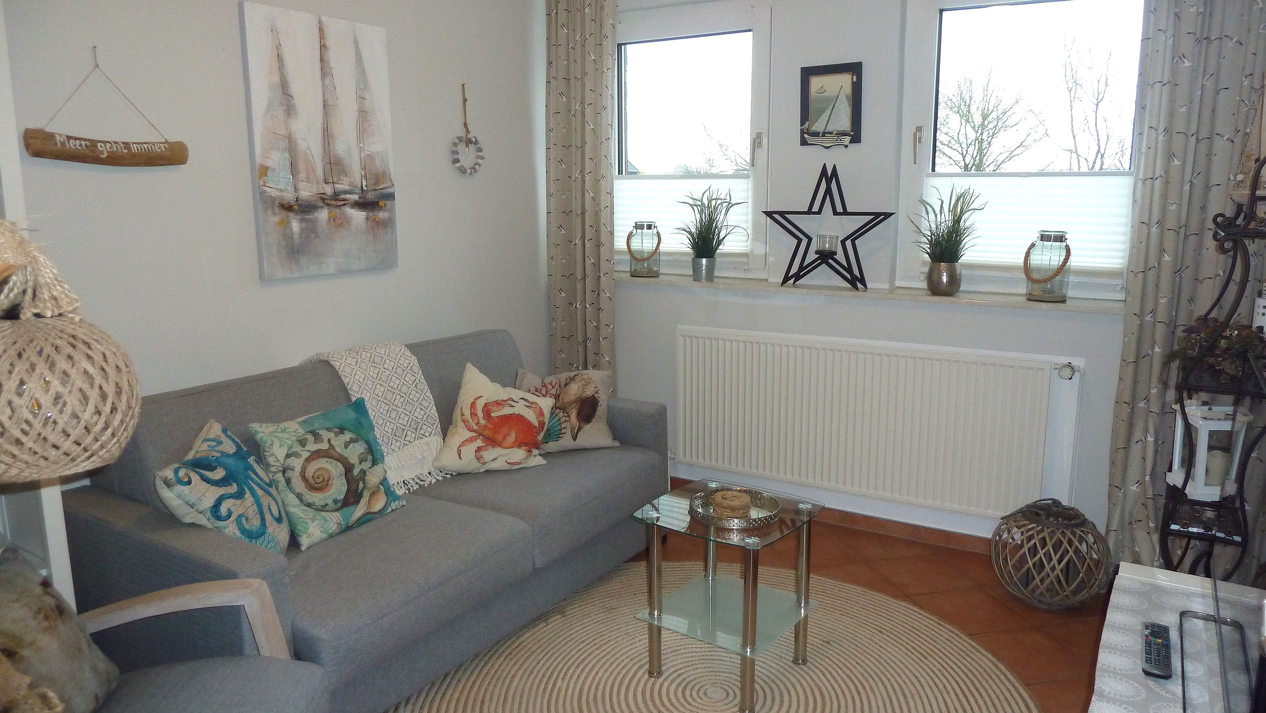 Die gemütliche und maritim, geschmackvoll eingerichtete 50 m² große Obergeschoßwohnung befindet sich in einem Mehrfamilienhaus in Wrixum und bietet Platz für zwei bis vier Personen. Das Objekt verfügt über zwei separate Schlafzimmer - das eine Schlafzimmer ist mit einem Doppelbett ausgestattet und das zweite Schlafzimmer hat eine sehr stabile Doppelchlafcouch. Dazu erwartet Sie ein kleines helles Wohnzimmer, eine sperate Küche und das Duschbad darf natürlich nicht fehlen.