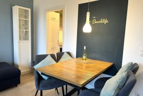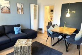 Das moderne 2-Zimmer App. Beachlife für 2-4 Personen punktet durch seine absolut zentrale Lage sowie der unmittelbaren Nähe zum Westerländer Strand. Auf dem schönen Ostbalkon mit seitlichem Blick auf die Friedrichstraße lässt sich ein sonniges Frühstück genießen. Das angrenzende Wohnzimmer inkl. Essecke sowie ausziehbarer Schlafcouch bietet eine Schlafmöglichkeit für zwei Personen. Die kleine, offene Küche ist samt Geschirrspüler, Cerankochfeld und Backofen vollständig ausgestattet. Das Schlafzimmer verfügt über ein Doppelbett sowie viel Stauraum für einen ausgiebigen Sylturlaub. Das moderne Duschbad ist mit einem Haartrockner ausgestattet. Durch die Ausrichtung zur Bismarckstraße bietet die Wohnung - trotz der Top-Lage auf Westerlands Flaniermeile - Ruhe und Erholsamkeit. Kostenloses WLAN sowie ein ebenerdiger Fahrstuhl sind vorhanden. Eine Waschmaschine sowie ein Waschtrockner stehen gegen Gebühr zur gemeinschaftlichen Nutzung zur Verfügung. Haustiere sind nicht gestattet.