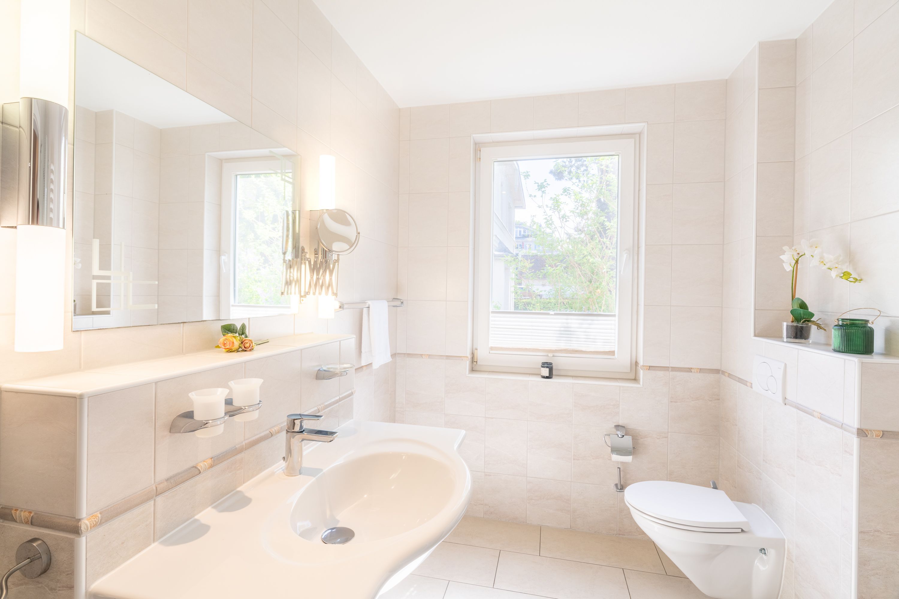 Damit Sie Ihre wohlverdiente Urlaubszeit bereits am Anreisetag in vollen Zügen genießen können, haben wir das Bett für Sie und das für Ihre lieben Mitreisenden bereits bezogen und ein Duschtuch sowie ein kleines Handtuch bereitgelegt. Das Badezimmer ist mit Dusche, WC und einem Haartrockner ausgestattet.