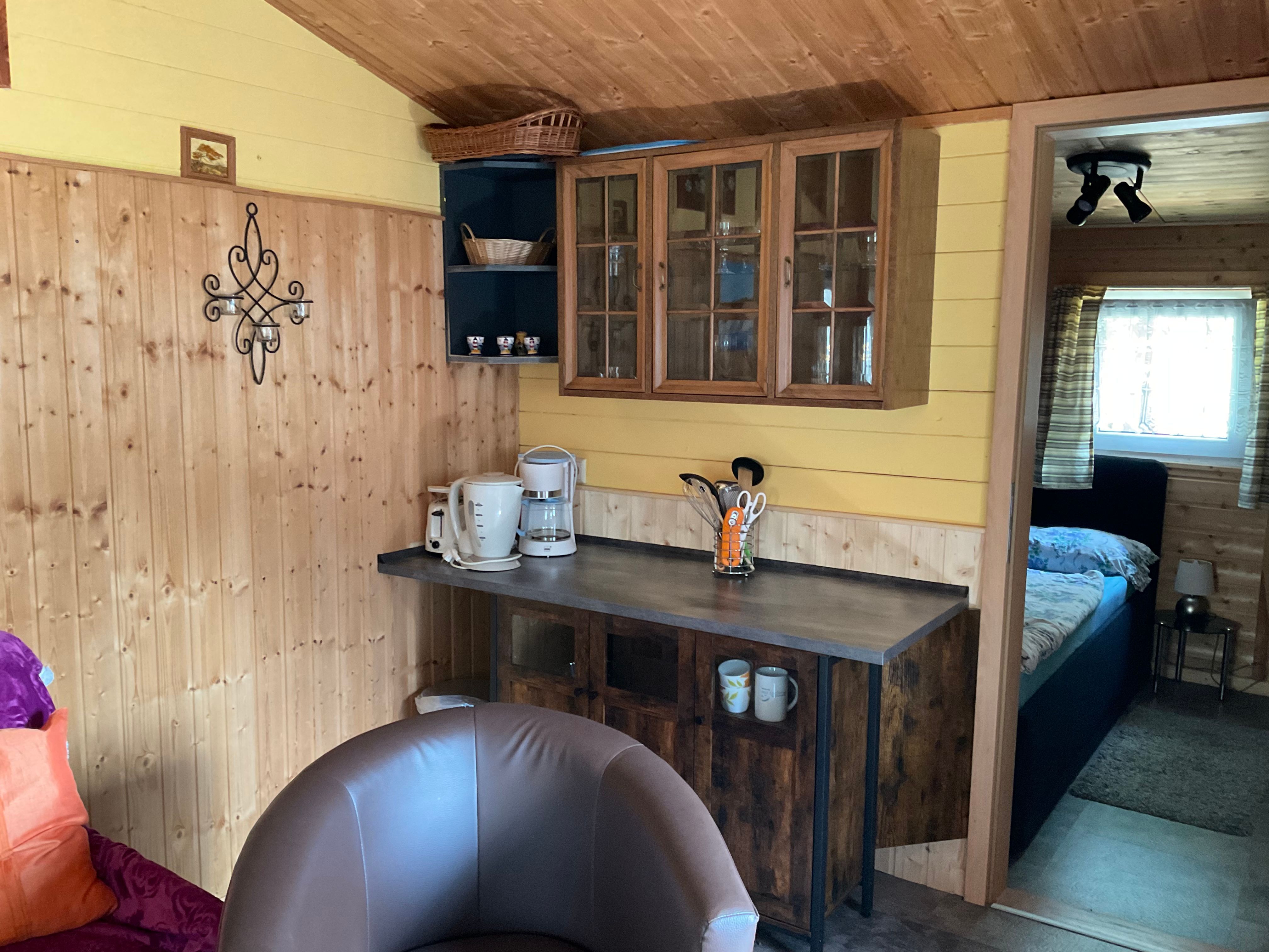 - 1 Wohnzimmer mit Einbauküche  - Bad mit Dusche