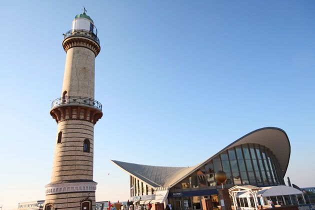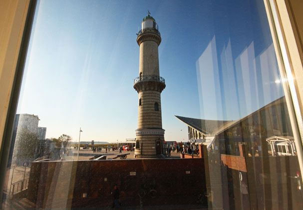 Direkt gegenüber dem Leuchtturm von Warnemünde befindet sich die exklusive Ferienwohnung im ersten Stock eines denkmalgeschützten Warnemünder Traditionshauses. Die große Fensterfront bietet einen fantastischen Blick auf den Leuchtturm, den Teepott und die Ostsee.