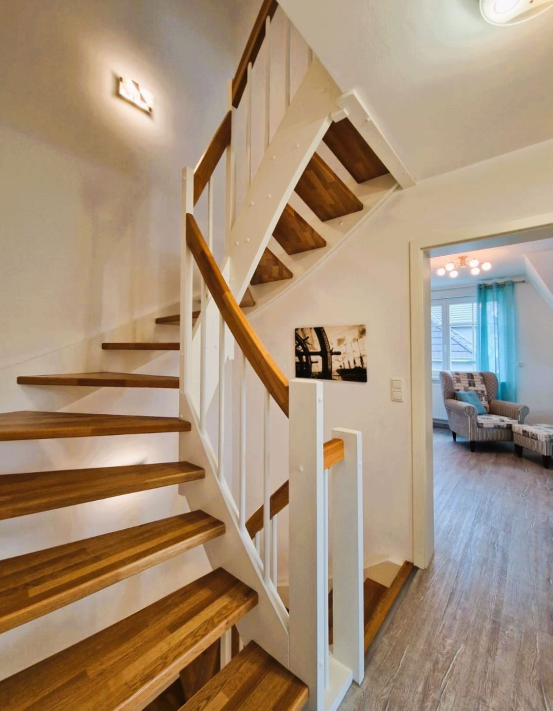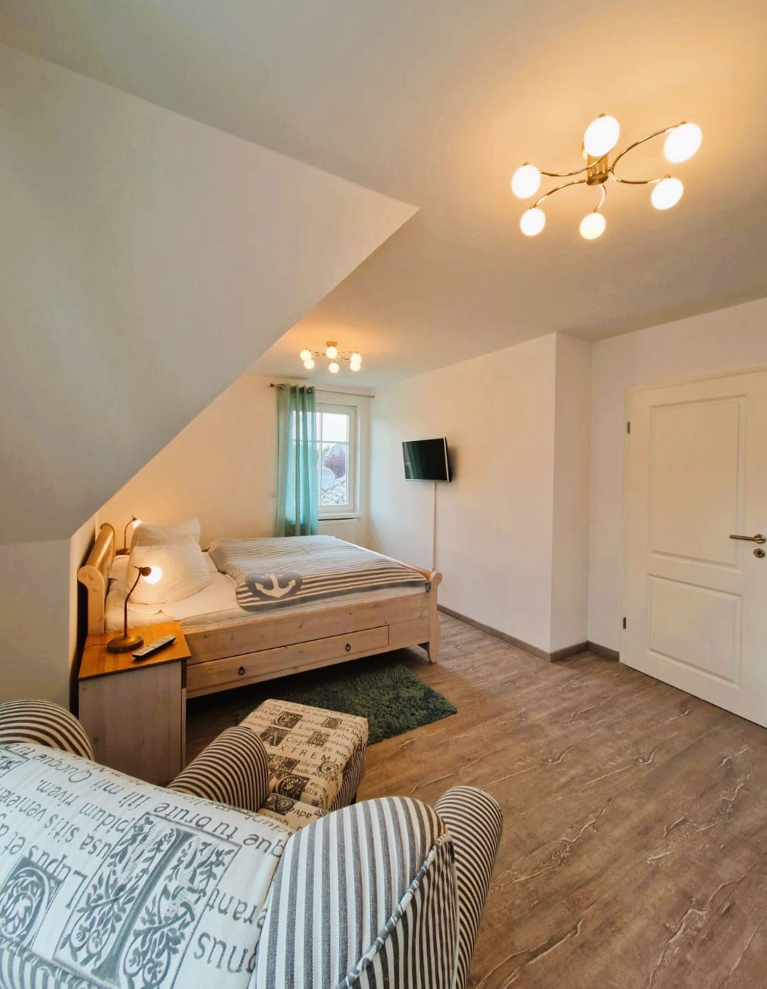Im 1. Stock befinden sich 1 Schlafzimmer mit Ehebetten und TV, 1 Schlafzimmer mit 2 Einzelbetten, Dusche /WC