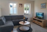 Gemütlicher Wohnbereich mit Kaminofen & Flachbild-TV,