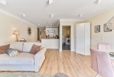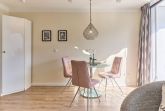 Beim Betreten des Apartments erwartet Sie eine elegante und gemütliche Atmosphäre. Ein Highlight der Wohnung ist der helle, offene Wohn-Essbereich, der einladend gestaltet und stilvoll möbliert ist. Hier können Sie gemeinsame Mahlzeiten genießen, entspannen oder einen gemütlichen Abend bei einem Film verbringen.