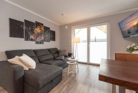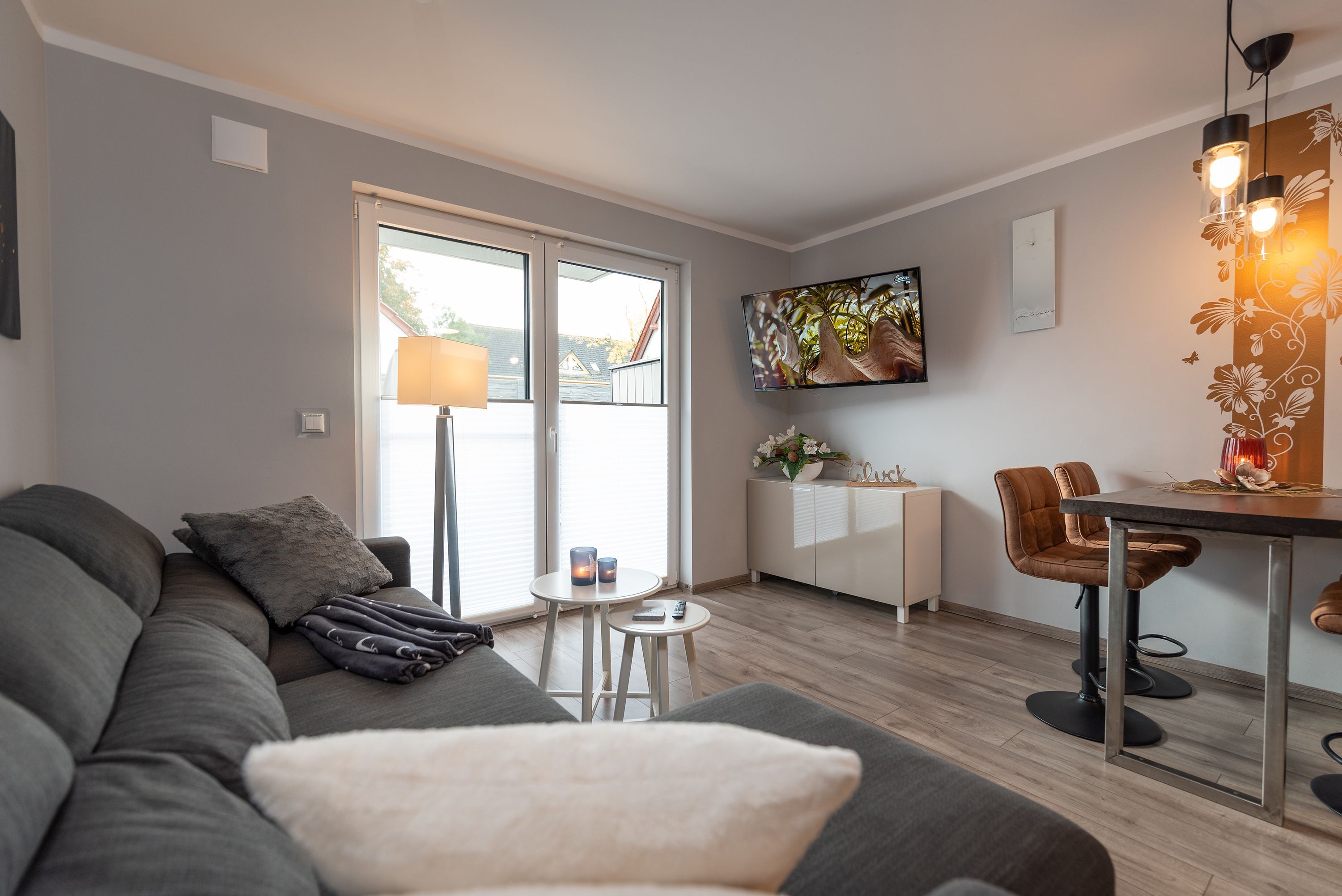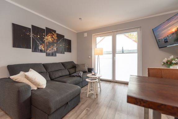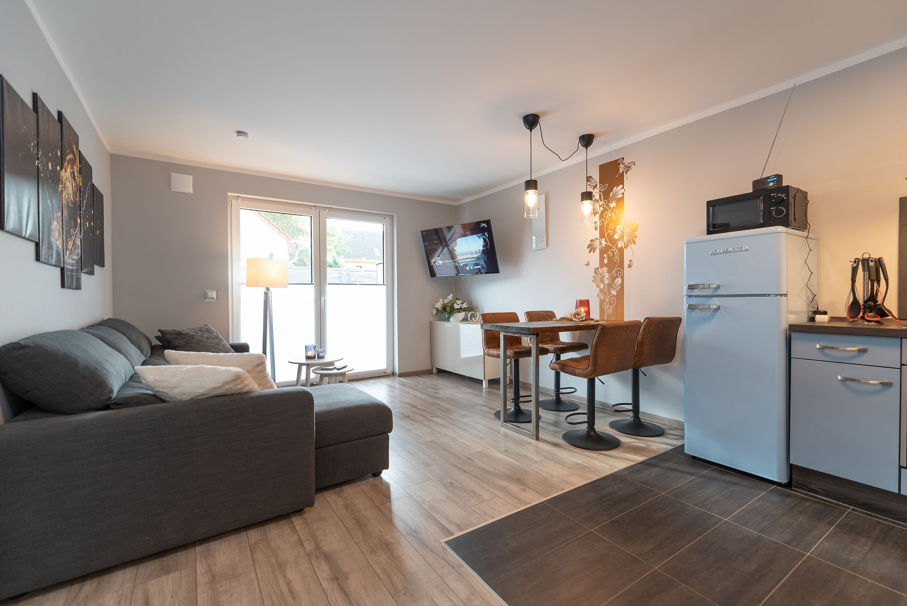 Das Appartement Nr. 2 im Erdgeschoss unten links ist speziell für Gäste mit Hunden konzipiert und bietet Platz für bis zu 4 Personen plus Baby. Die Ausstattung umfasst: