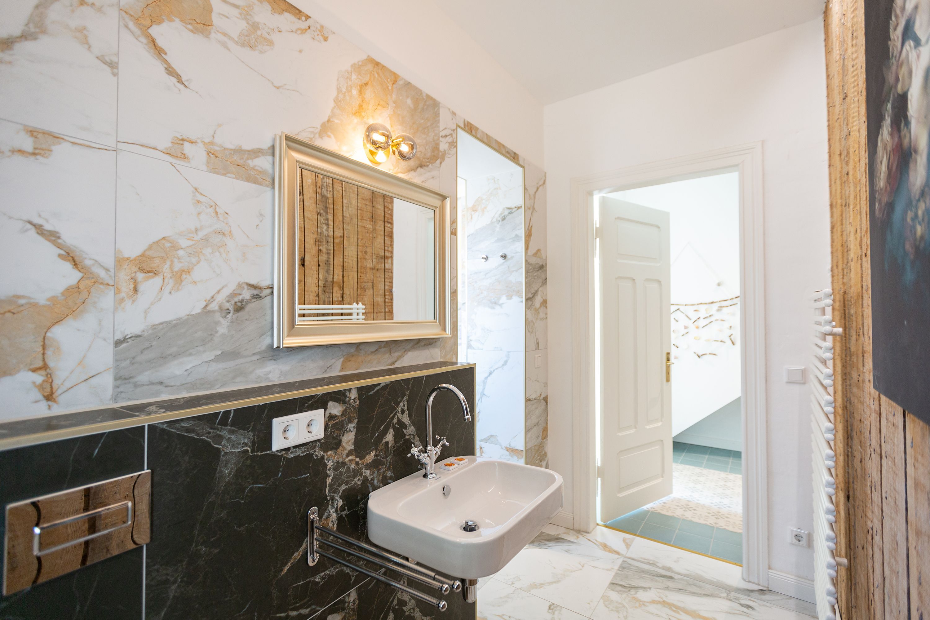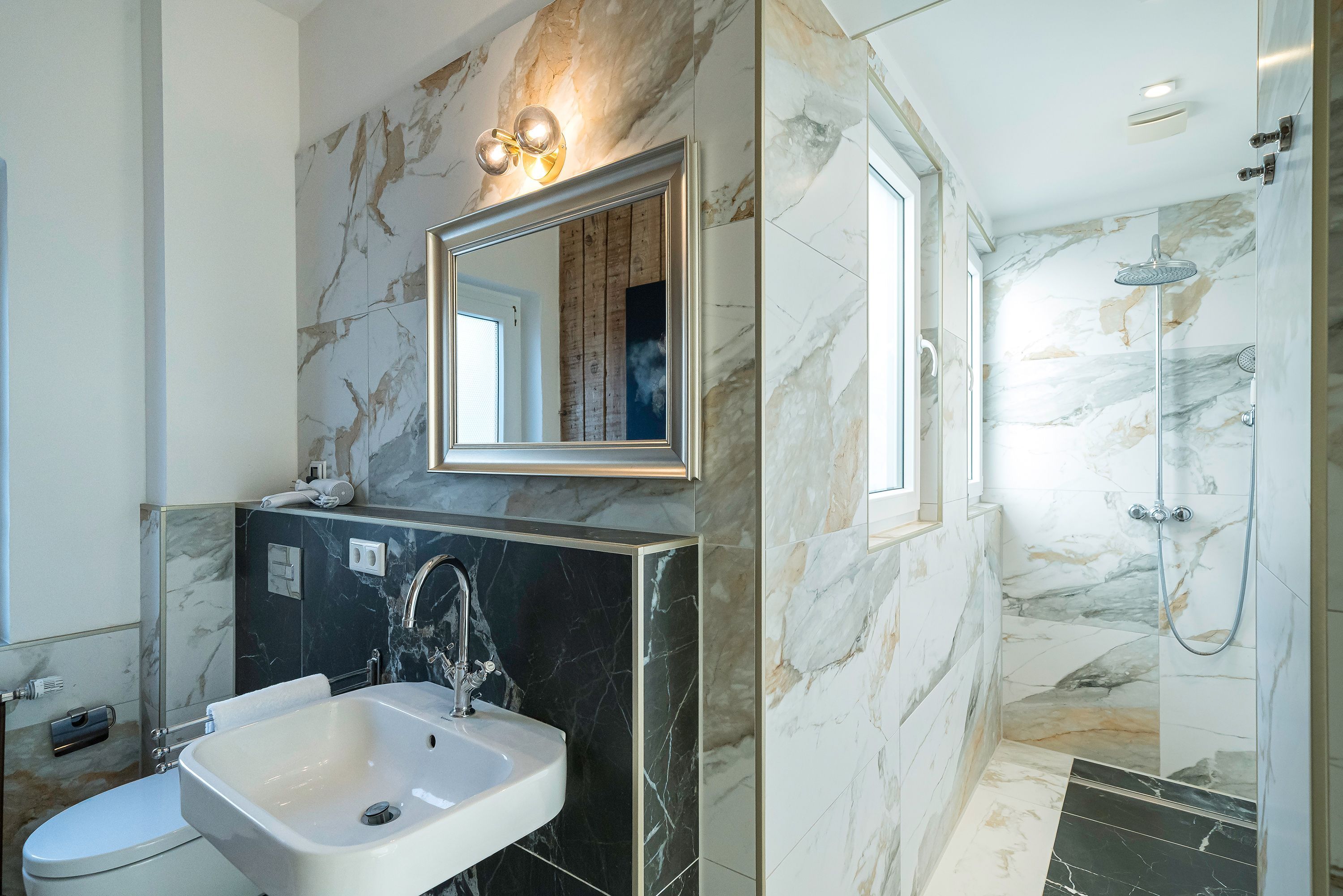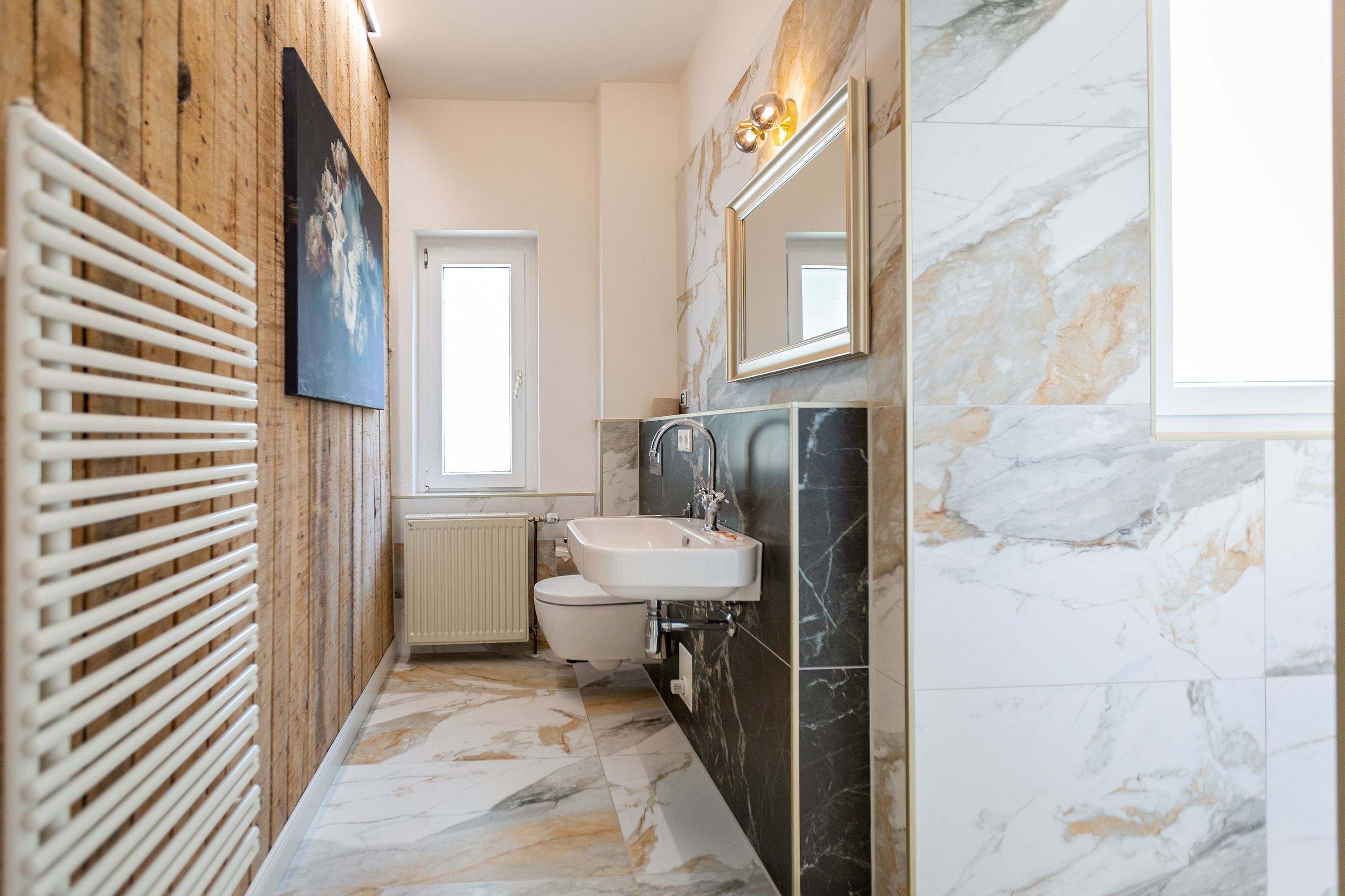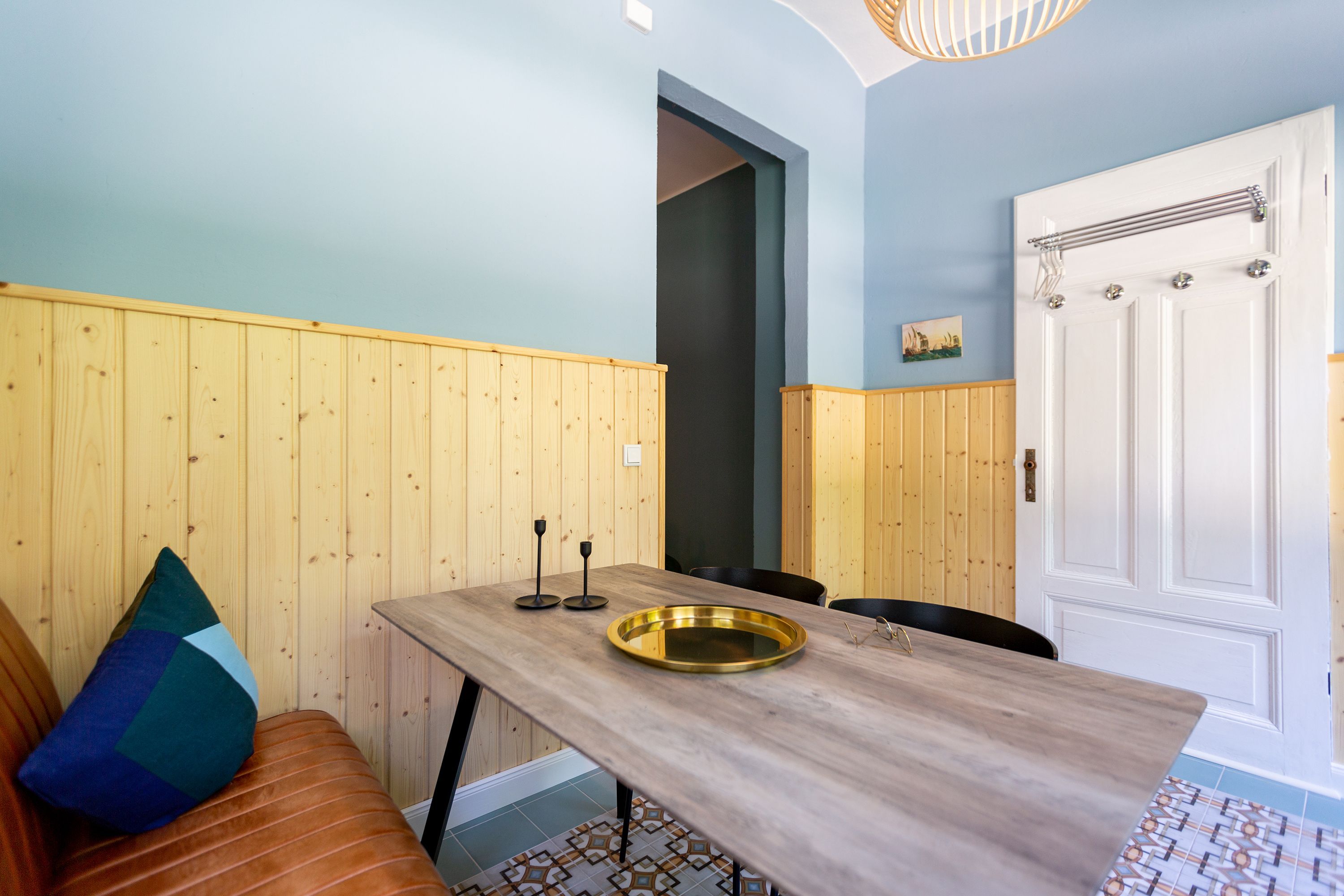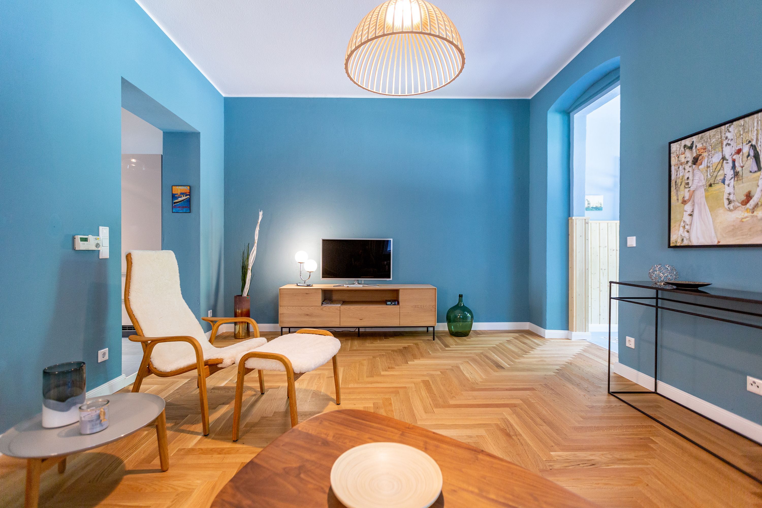 Die Ferienwohnung 2 im Erdgeschoss besticht durch ihre liebevolle Ausstattung und das durchdachte Raumkonzept. Sie umfasst einen offenen Wohnbereich mit einer komfortablen Schlafcouch, die als zusätzliche Schlafmöglichkeit dient, sowie einen Flat-TV. Die angrenzende Küchenzeile ist mit allem ausgestattet, was das Herz begehrt, von der Nesspressomaschine bis zum Backofen. Ein separater Essbereich in der Veranda bietet den perfekten Rahmen für gemeinsame Mahlzeiten oder unterhaltsame Spieleabende. Das Schlafzimmer lädt mit einem luxuriösen Boxspringdoppelbett (1,80m x 2,00m) zum Entspannen ein, während das stilvolle Badezimmer mit einer ebenerdigen Dusche, einem Waschbecken und WC ausgestattet ist. Zur Wohnung gehört zudem eine kleine, nach Norden ausgerichtete Terrasse mit Gartenmöbeln, ideal, um die frische Ostseeluft zu genießen.