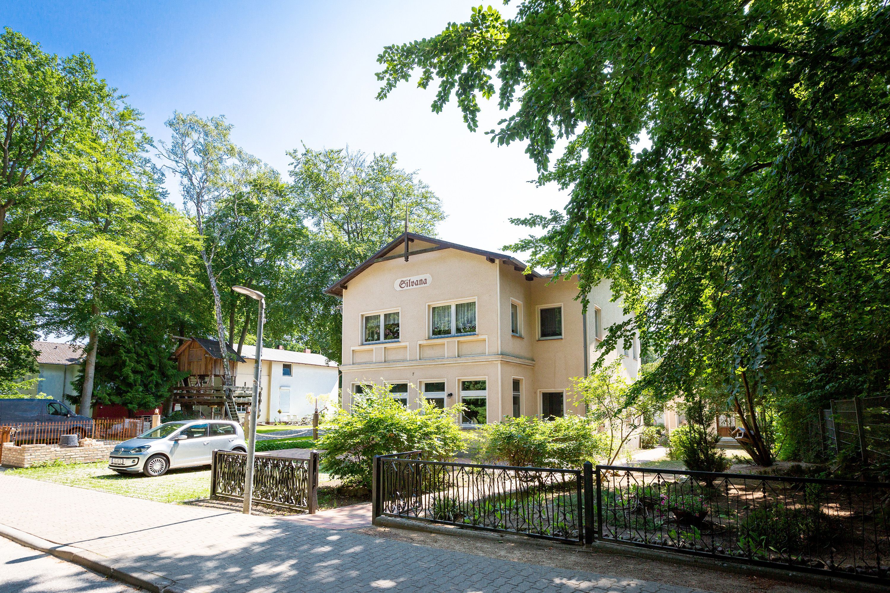Das Haus Silvana, gelegen im malerischen Seebad Zempin, bietet Urlaubern eine Auswahl an frisch renovierten und modern eingerichteten Unterkünften. Mit zwei Ferienwohnungen im Erdgeschoss und einem charmanten Bungalow auf dem Hof, ist jede Unterkunft ideal für 2 Personen plus einem Kind bis zu 15 Jahren gestaltet. Gäste genießen kostenfreies WLAN sowie Zugang zu Waschmaschine und Trockner (gegen Gebühr) in einem separaten Raum, während für jede Wohnung ein PKW-Stellplatz direkt vor dem Haus reserviert ist.