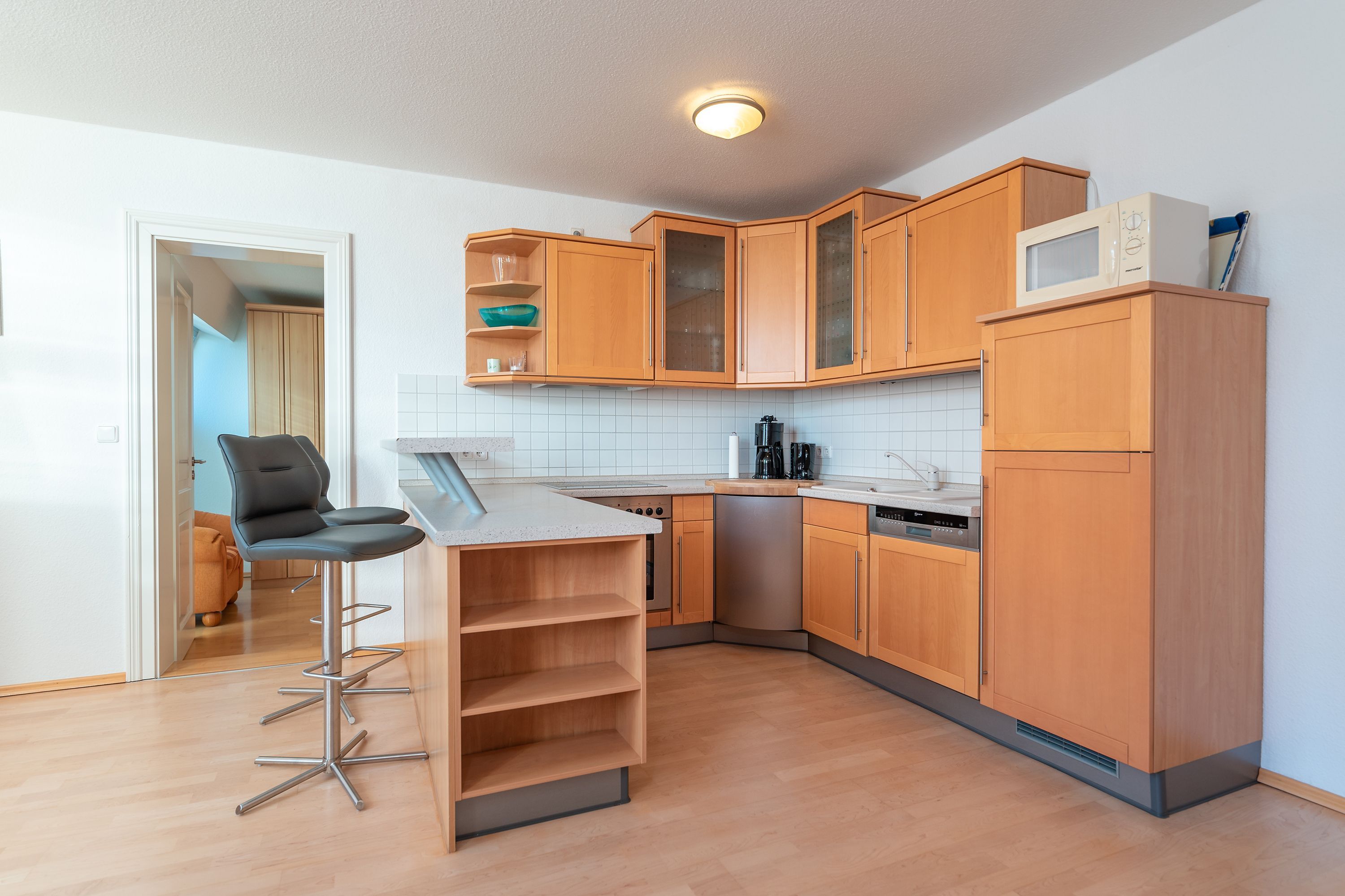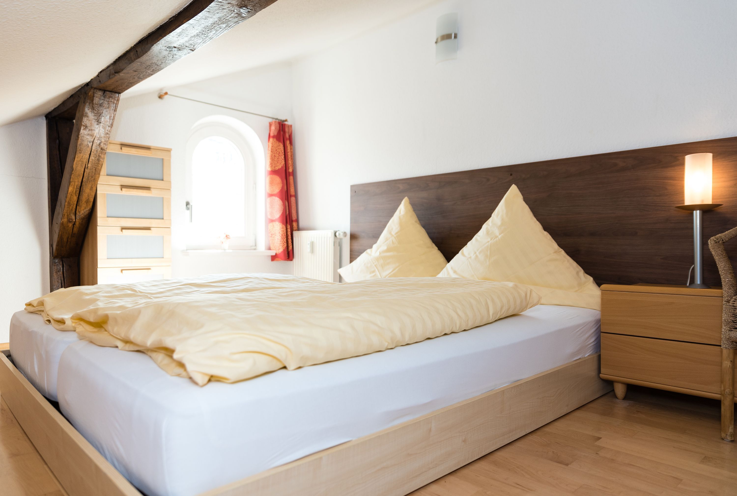 Diese großzügige Galeriewohnung, gelegen im 1. Obergeschoss und Dachgeschoss der Villa, ist ein wahres Juwel für jeden Urlauber. Im 1. Obergeschoss lädt ein großes Schlafzimmer mit komfortablem Doppelbett zum Träumen ein, während die offene, voll ausgestattete Küche mit einem Esstisch für sechs Personen zum gemeinsamen Kochen und Genießen einlädt. Ein modernes Badezimmer mit Dusche rundet die Ausstattung auf dieser Etage ab.