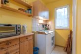 Die kleine Küchenzeile ist mit zwei Herdplatten, einem Wasserkocher, einer Kaffeemaschine und einem Backofen ausgestattet. So können Sie sich jederzeit einen warmen Tee oder Kaffee zubereiten und bei Bedarf kleine Mahlzeiten und Snacks backen.