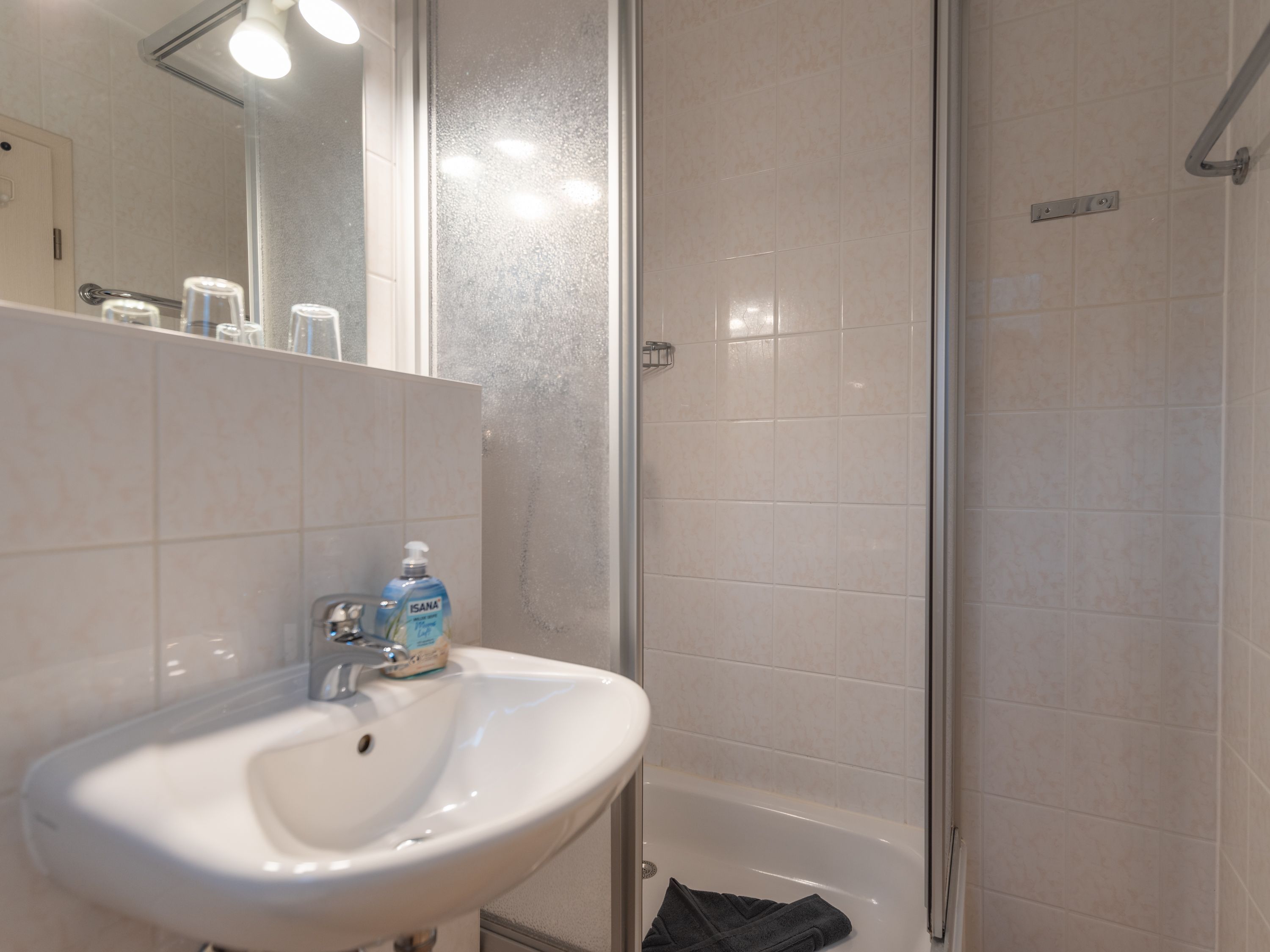 Das Badezimmer verfügt über eine Dusche und ein WC, und bietet damit alles Nötige für Ihren täglichen Komfort. Kostenfreies WLAN steht Ihnen während Ihres Aufenthalts zur Verfügung, sodass Sie immer verbunden bleiben können.