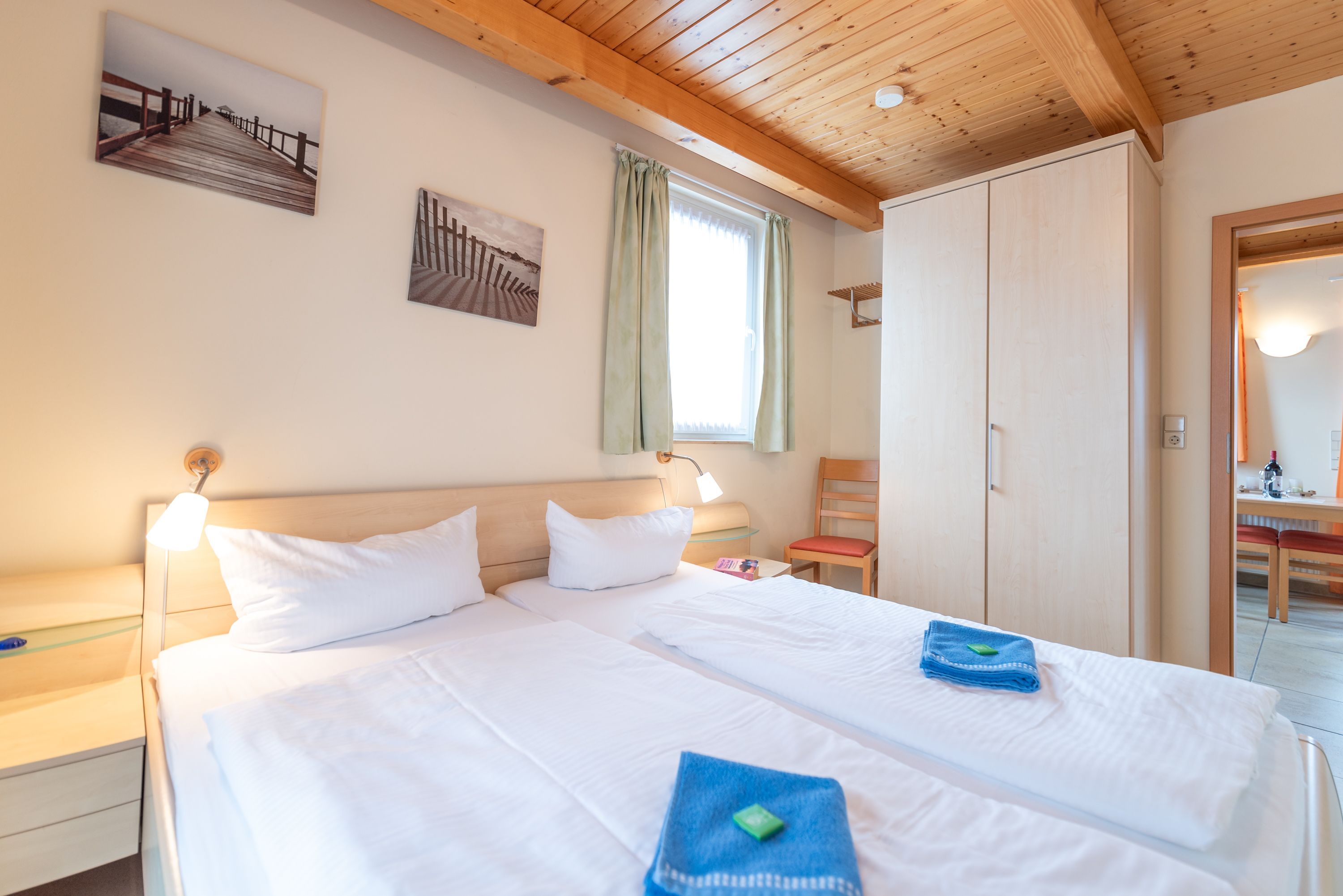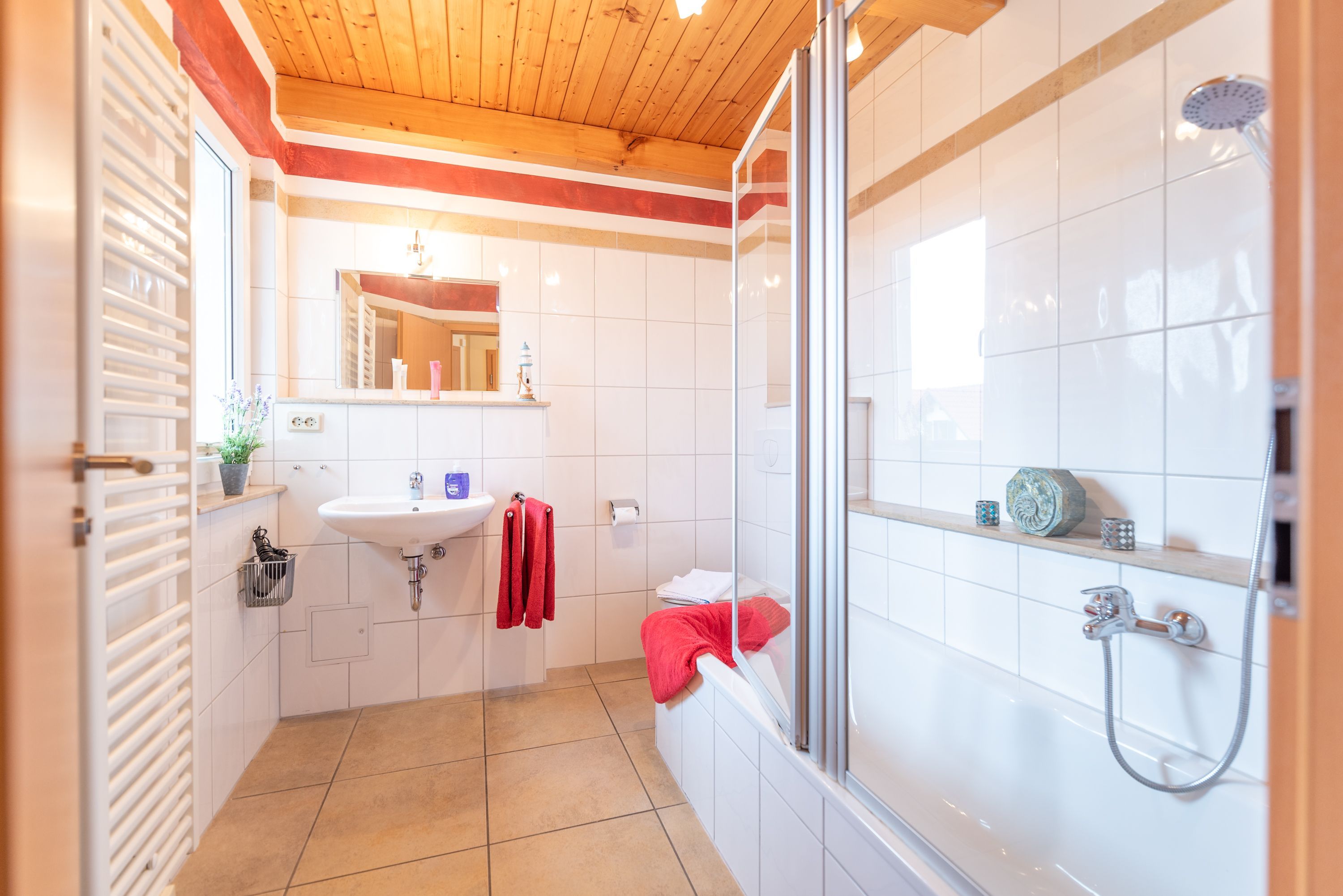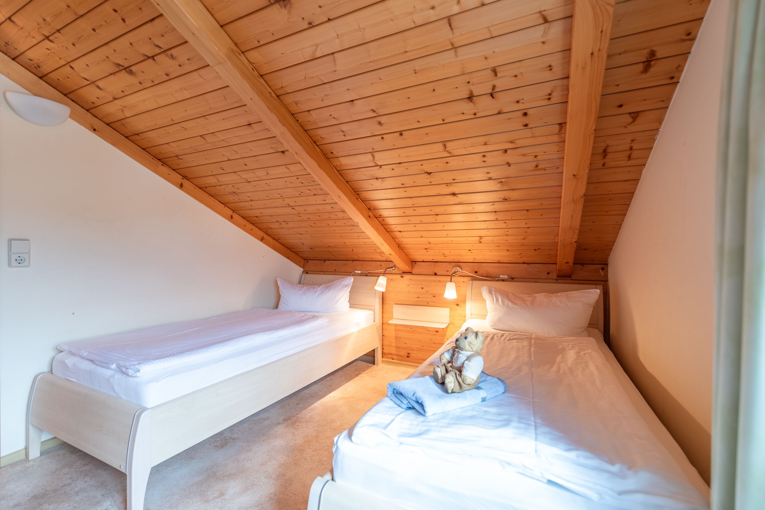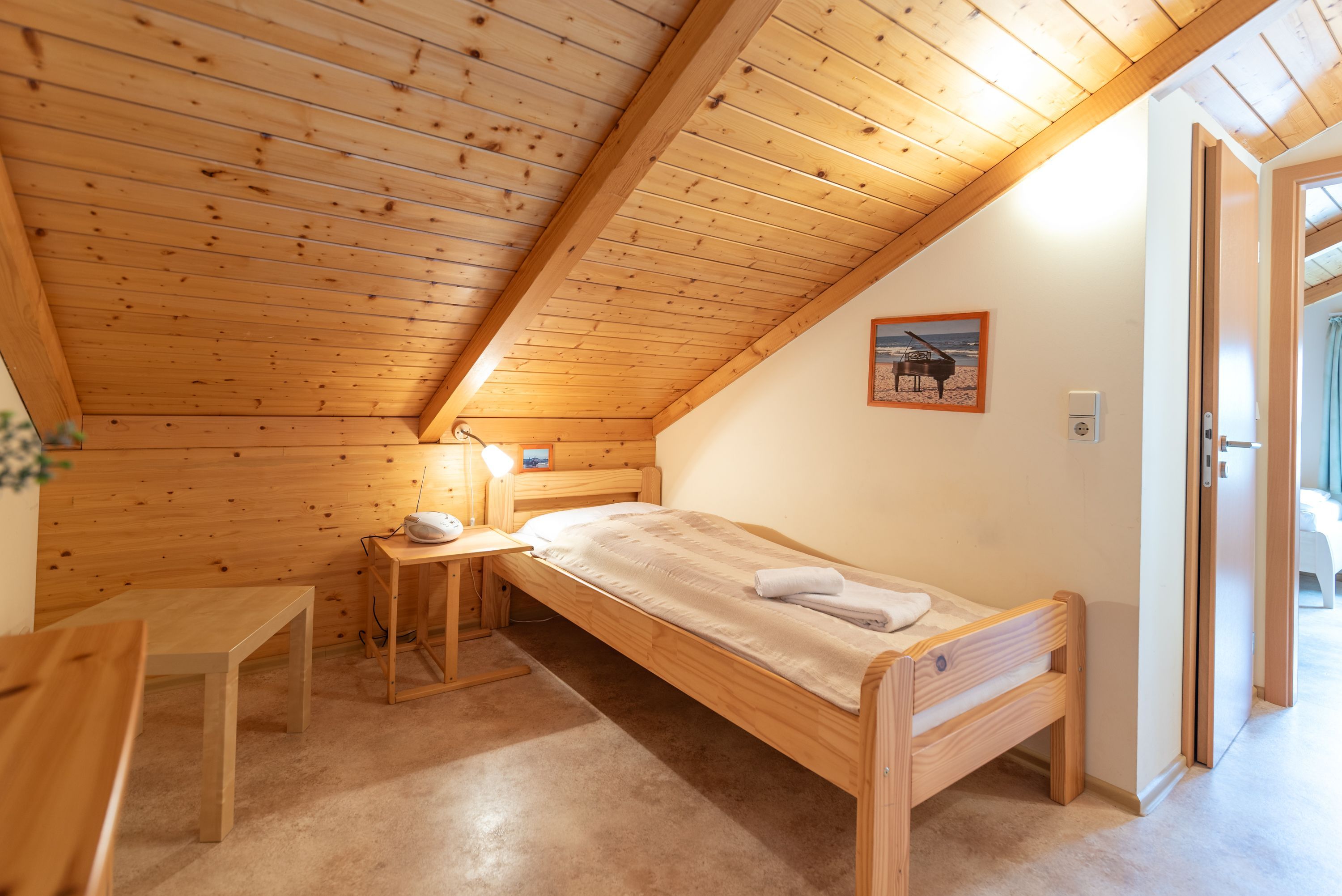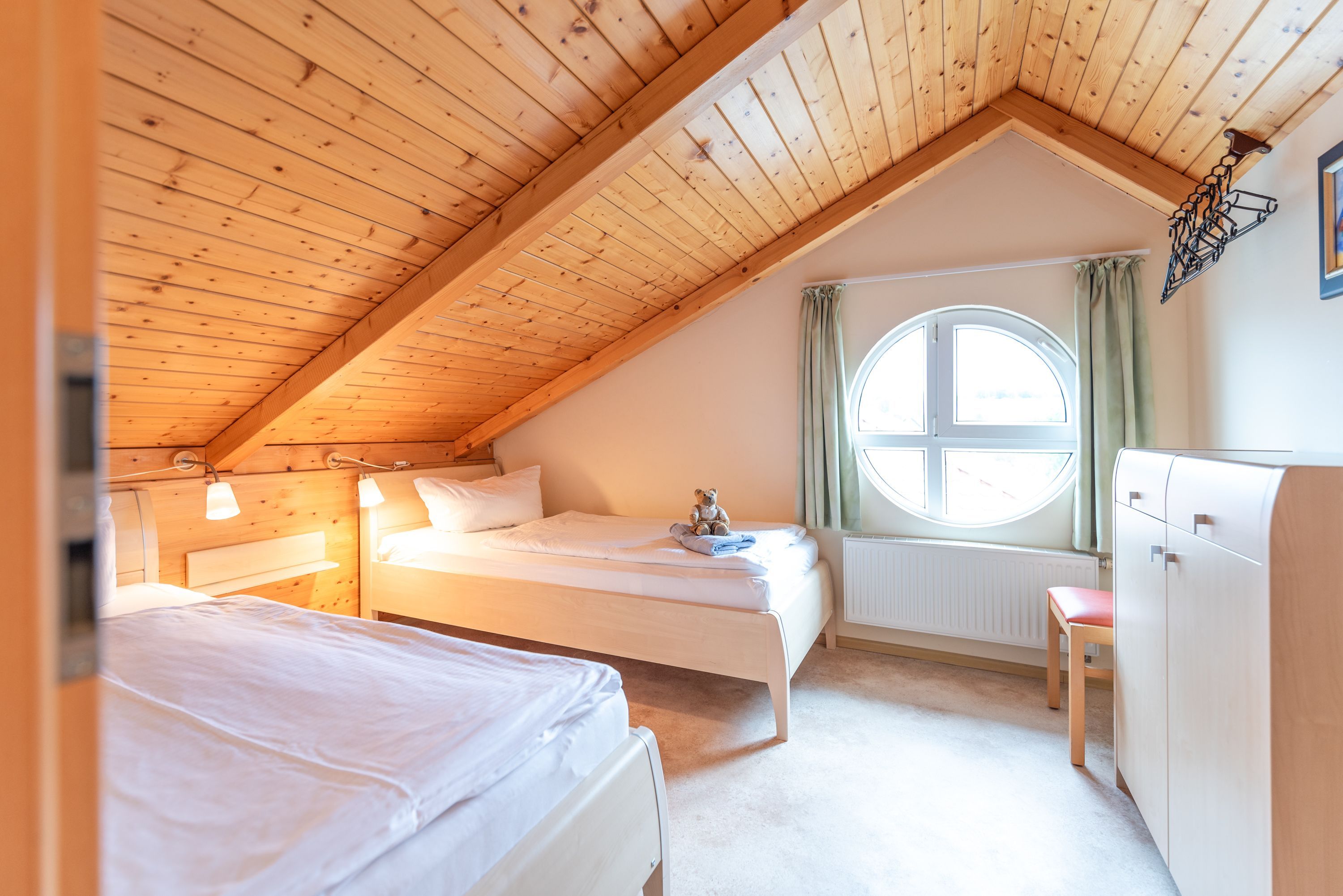 Das 3.Einzelbett steht auf dem großzügigen Dachraum (offen) neben dem 2.Schlafzimmer. Die Wohnung umfasst zudem ein modernes Bad (Duschwanne) und ein Gäste-WC, sowie ein gemütliches Wohnzimmer, das viel Platz zum Entspannen und Beisammensein bieten.