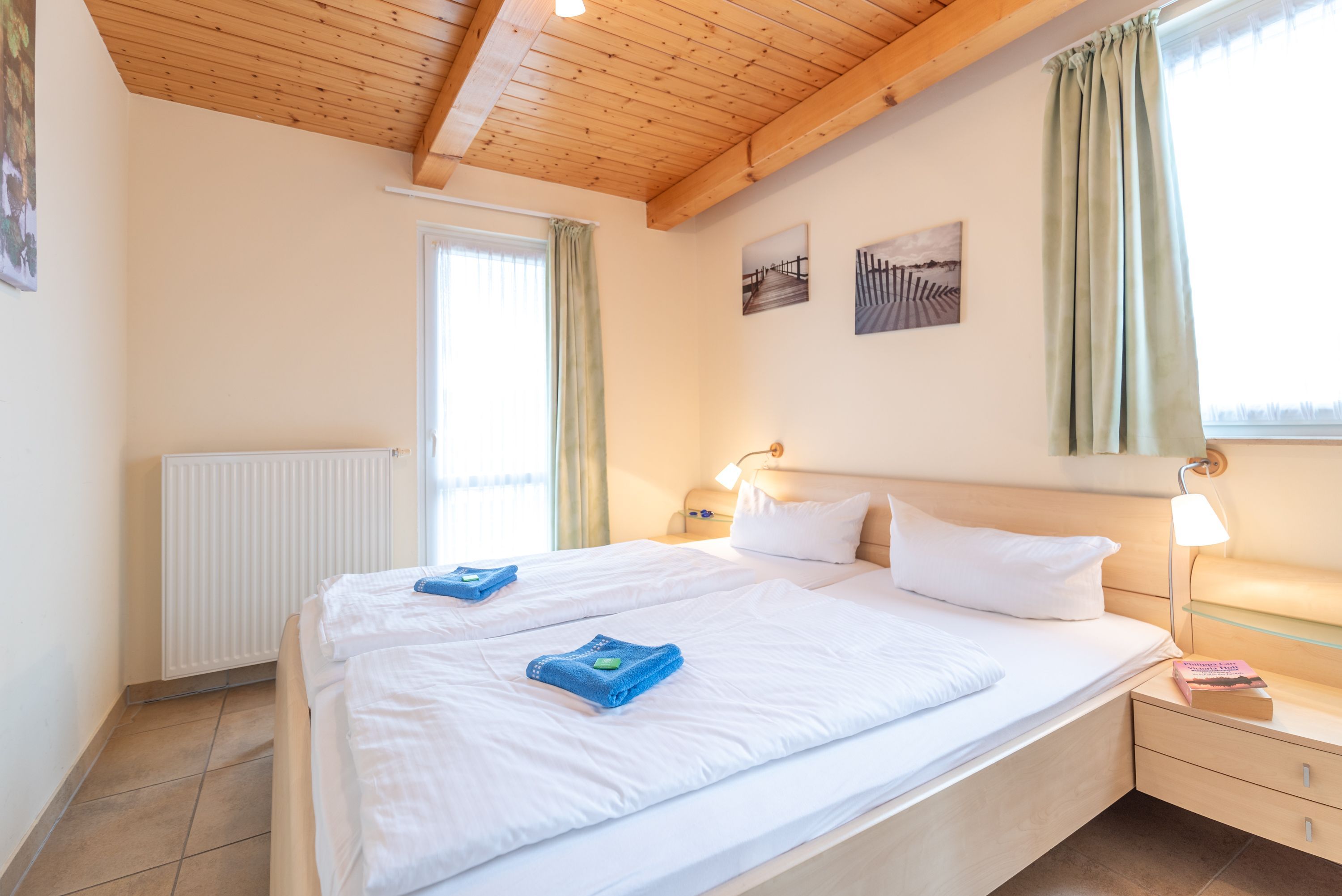 Die Wohnung erstreckt sich über eine Fläche von 66 m² und bietet Platz für bis zu 5 Personen. Sie verfügt verfügt über ein Schlafzimmer mit Doppelbett und ein weiteres Schlafzimmer im Dachgeschoss mit zwei getrennt stehenden Betten.