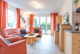 Die Ferienwohnung verfügt über ein gemütliches Schlafzimmer mit Doppelbett und ein weiteres Schlafzimmer mit zwei getrennt stehenden Betten. Das Wohnzimmer ist mit einer komfortablen Ledersitzgarnitur, einem Esstisch mit vier Stühlen sowie einem Flachbild-SAT-TV (FullHD/LED) und einem CD-Radio ausgestattet. Die integrierte, voll ausgestattete Küchenzeile lässt keine Wünsche offen.
