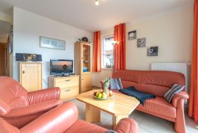 Die Ferienwohnung verfügt über ein gemütliches Schlafzimmer mit Doppelbett und ein weiteres Schlafzimmer mit zwei getrennt stehenden Betten. Das Wohnzimmer ist mit einer komfortablen Ledersitzgarnitur, einem Esstisch mit vier Stühlen sowie einem Flachbild-SAT-TV (FullHD/LED) und einem CD-Radio ausgestattet. Die integrierte, voll ausgestattete Küchenzeile lässt keine Wünsche offen.