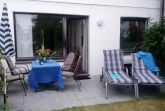 Vom Wohnzimmer aus gelangen unsere Gäste auf die Südterrasse. Hier können diese bei schönem Wetter die Mahlzeiten am Gartentisch einnehmen und wenn man einmal nicht an den Strand gehen möchte, kann man hier auf eigenen Sonnenliegen die Seele baumeln lassen. Sollte es seitens der Gäste in den Wohnungen zu einer Überbelegung kommen, wird ein Übernachtungsaufschlag von 10,-- € pro Person berechnet.