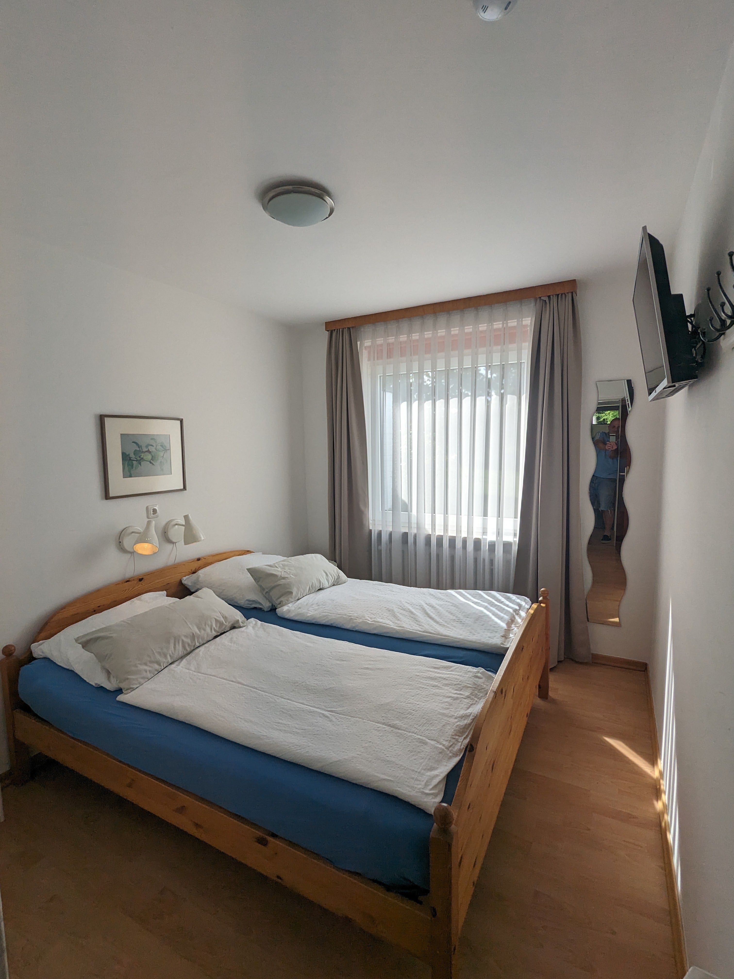 Außerdem gibt es in der Wohnung ein Duschbad/WC und eine separate, voll ausgestattete Küche mit Ceranfeld und Backofen, Kaffeemaschine, Wasserkocher, Mikrowelle, Kühlschrank mit Gefrierfach und reichlich Geschirr und Besteck.