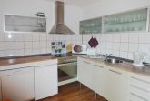 Die in das Wohnzimmer integrierte offene Küche mit Essecke verfügt unter anderem über einen Herd (4 Platten) mit einer Backröhre, einen Kühlschrank, eine Mikrowelle, einen Geschirrspüler, eine Kaffeemaschine und einen Wasserkocher.