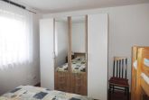 In dem Schlafzimmer stehen ein Doppelbett, ein Etagenbett und ein Kleiderschrank.