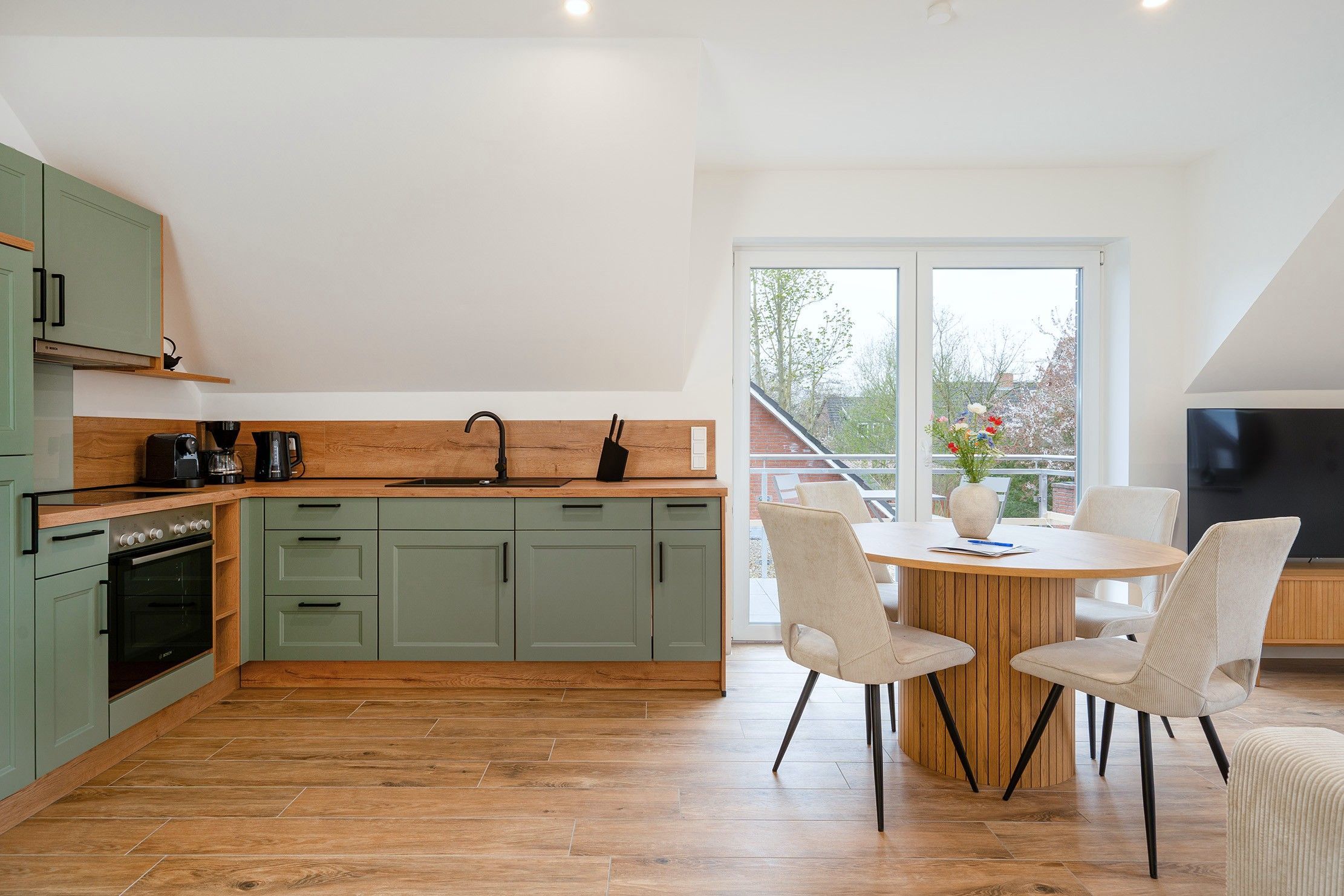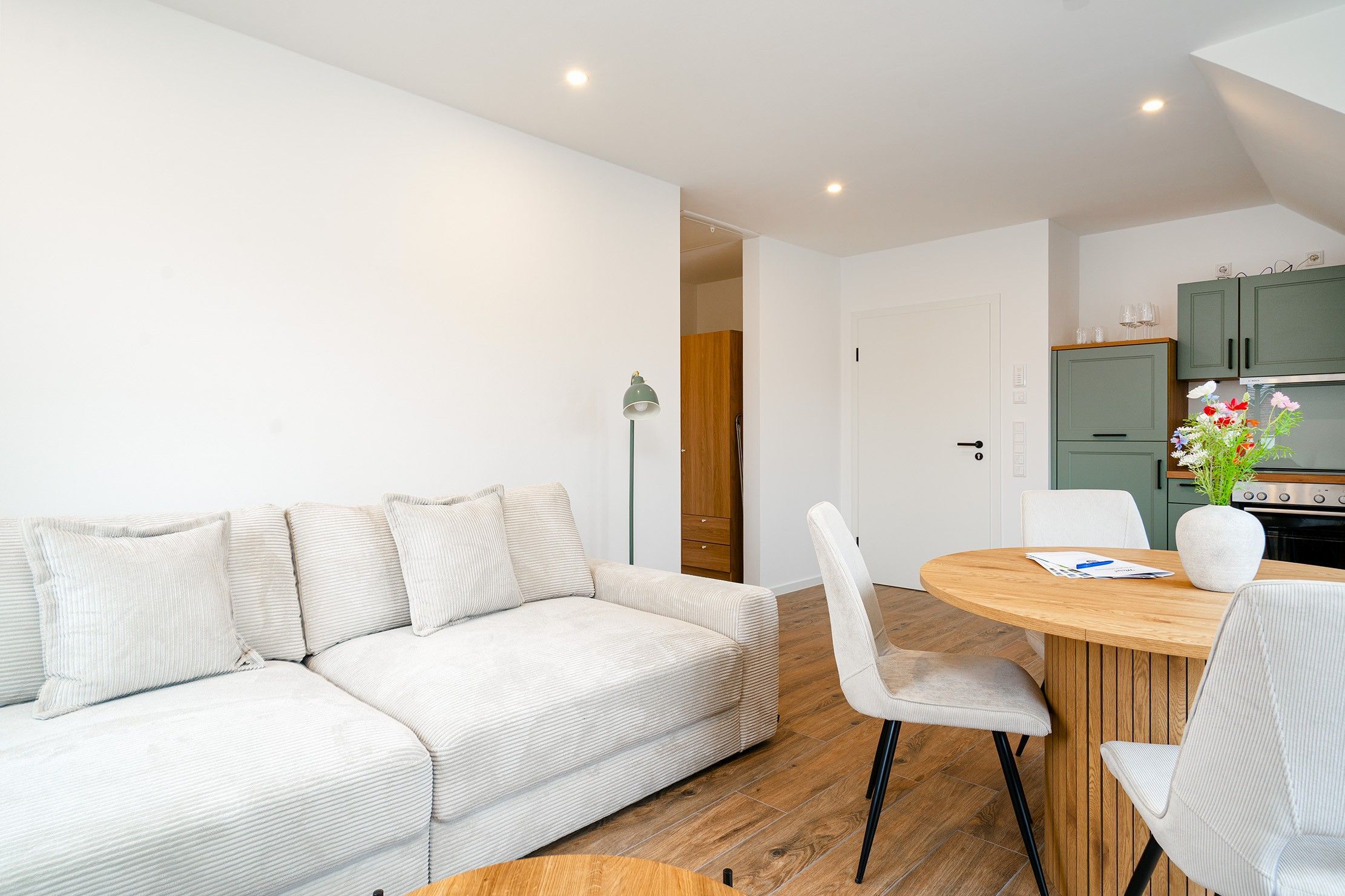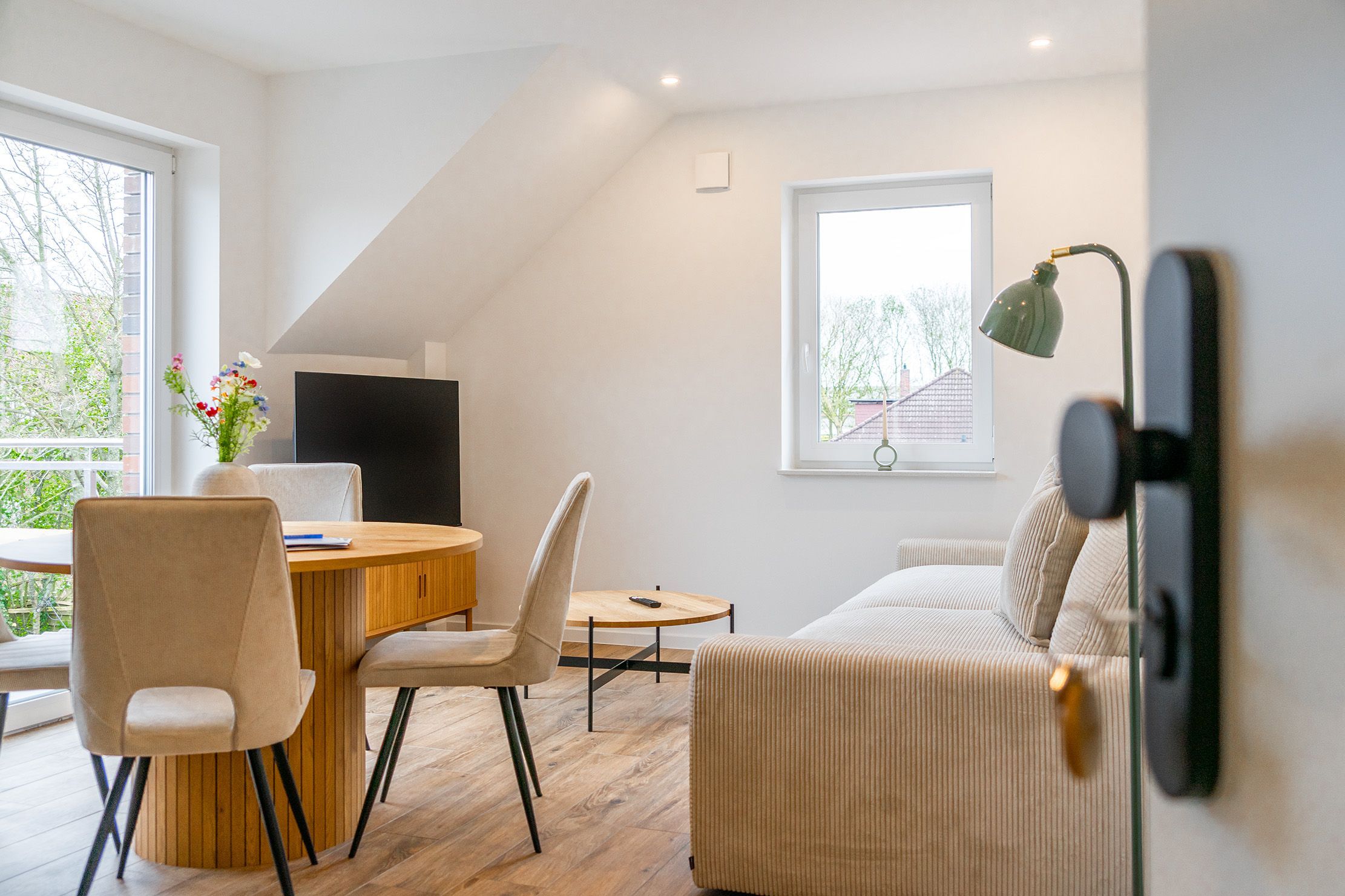 Im beliebten Küstenort Norddeich erwartet Sie unsere charmante Obergeschosswohnung WATT'N Traum I - ideal für Erholungssuchende und Nordsee-Liebhaber. Auf etwa 55qm verfügt die Wohnung über zwei gemütliche und helle Schlafzimmer und bietet somit Platz für bis zu vier Personen. Der großzügige, offene Wohnbereich bietet eine hochwertige und voll ausgestattete Einbauküche sowie einen Wohnbereich, der zum Verweilen einlädt. Von hier aus gelangen Sie auf den Balkon, auf dem Sie die frische Nordseeluft genießen können. Das großzügige Tageslichtbad überzeugt nicht nur durch seine helle und moderne Gestaltung, sondern bietet zudem eine luxuriöse Infrarotkabine perfekt, um nach einem Tag an der Nordsee zu entspannen und neue Energie zu tanken. Die Wohnung selbstverständlich auch einen eigenen PKW-Stellplatz. Durch die Lage unweit der beliebten Seehundaufzuchtstation erreicht man nach einem kurzen Spaziergang den Deich und Sandstrand.