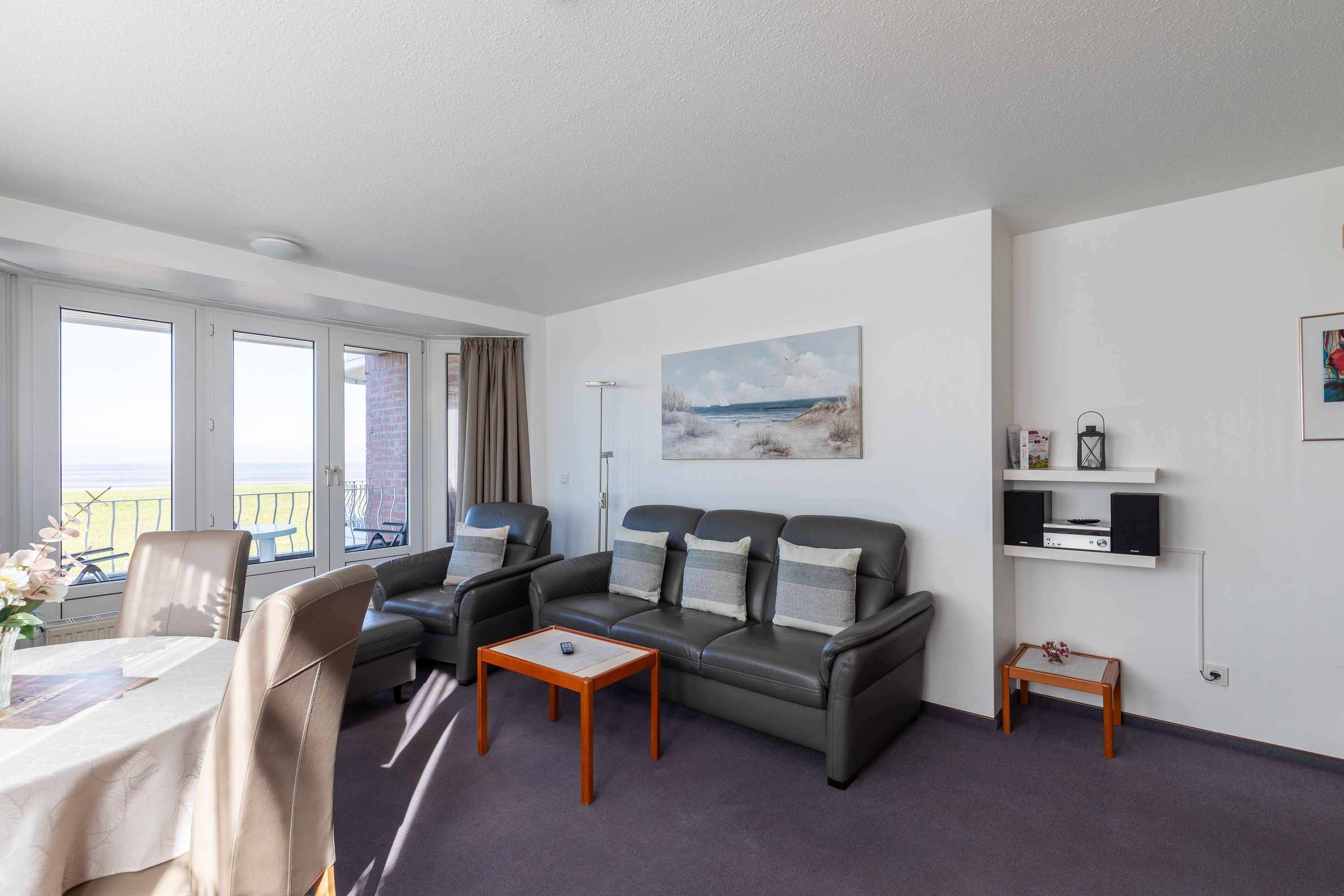 Das Haus Nordseeperle mit der Wohnung 6 ist eine 53 m² große Ferienwohnung, die Platz für bis zu 4 Personen bietet. Sie befindet sich im Dünenweg 15 und liegt in der 1. Etage. Die Wohnung beitet alles für einen erholsamen Urlaub an der Nordseeküste.