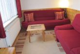 Wohnraum mit 3-Sitzer-Ausziehcouch, 2-Sitzer, SAT-TV, Radio, CD, große Fensterfront mit Ausgang zur Sonnenterasse mit Gartenmöbeln, Sonnenliege und Grill