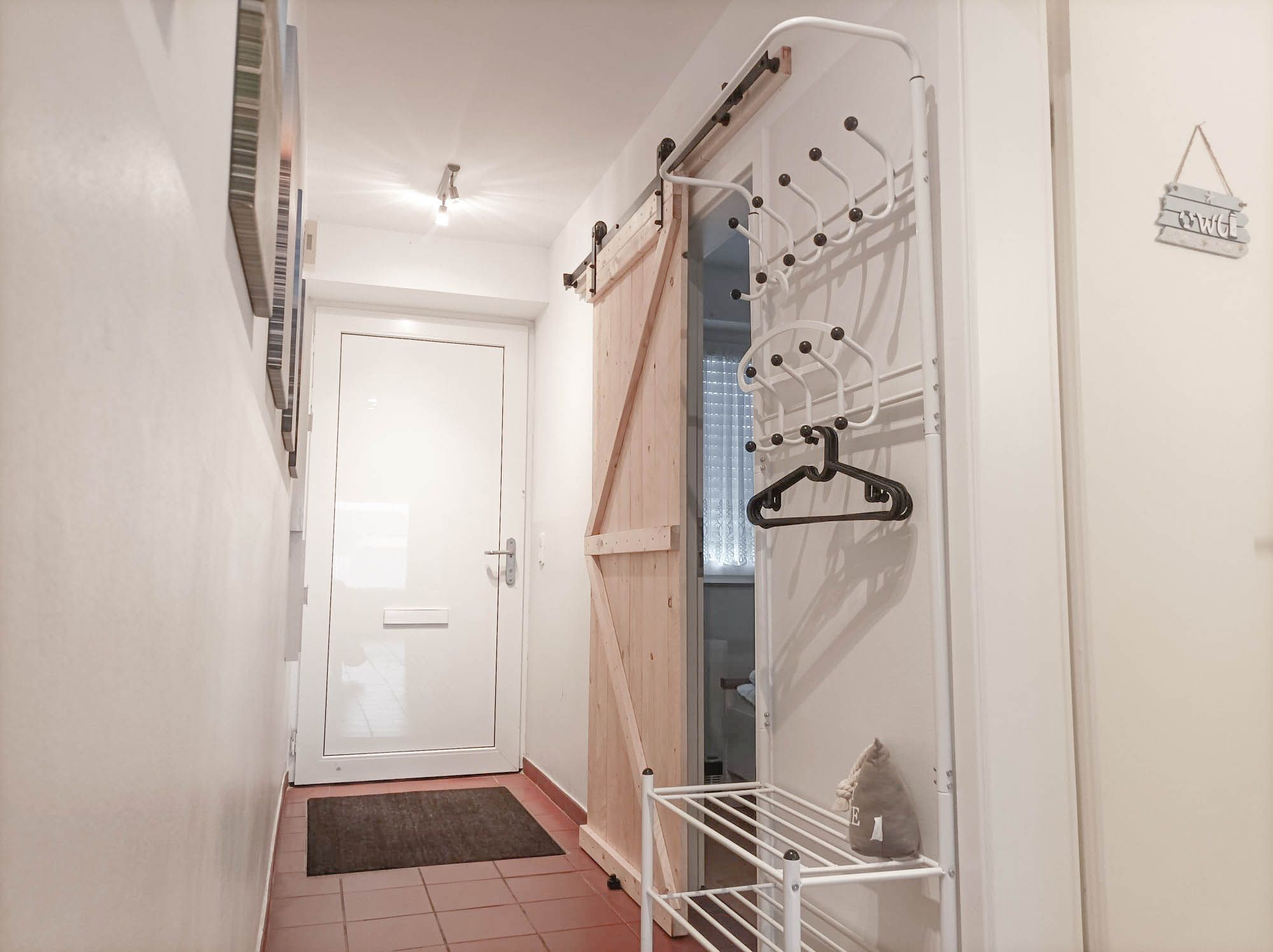 Genießen Sie die freundliche Atmosphäre in unserem offenen Wohn- und Essbereich. Die geschmackvolle Einrichtung sorgt dafür, dass Sie sich sofort wie zu Hause fühlen. Die voll ausgestattete Küchenzeile lässt keine Wünsche offen! Bereiten Sie leckere Mahlzeiten mit modernen Geräten zu. Vorhanden sind ein Backofen mit Ceranfeld, ein Geschirrspüler, Mikrowelle, Kaffeemaschine, Toaster, Wasserkocher, elektrischer Kontaktgrill und Co. Mit einem großzügigen Schlafsofa (1.40 x 2.00m) im Wohnbereich und einem Doppelbett (1.80 x 2.00m) im Schlafzimmer schlafen Sie einfach himmlisch! Verdunkelungsmöglichkeiten durch Rollläden sorgen für erholsame Nachtruhe. Treten Sie vom Wohnzimmer direkt hinaus auf unsere überdachte Südterrasse und genießen Sie den Blick in den kleinen, eingezäunten Garten perfekt für entspannte Grillabende mit unserem Kugelgrill. Im Flur der sonnendurchfluteten Wohnung befindet sich eine kleine Bilder Dauerausstellung, die zum Betrachten einlädt und für ein zusätzliches Ferienfeeling sorgt.