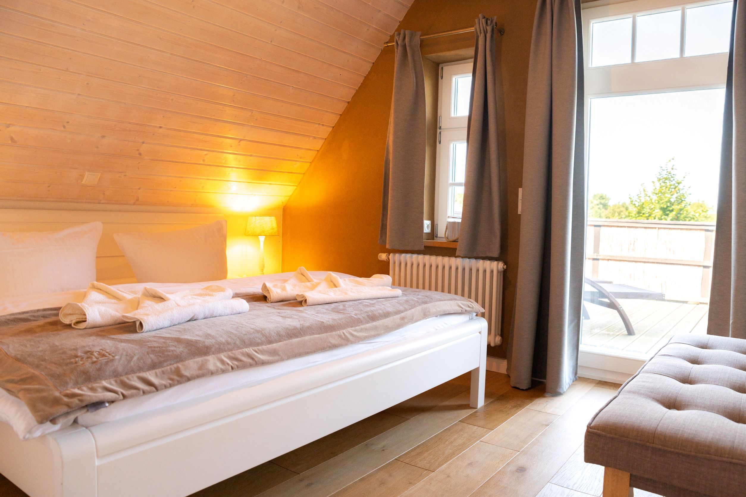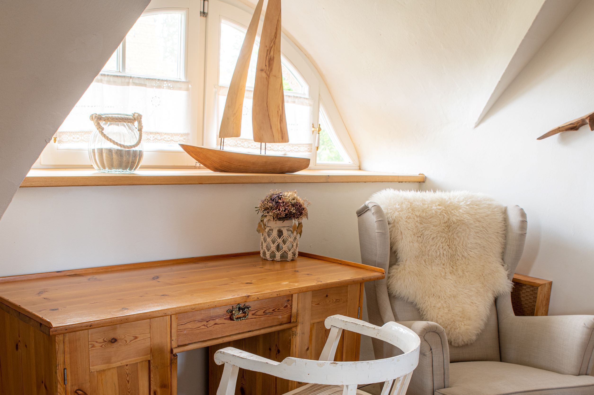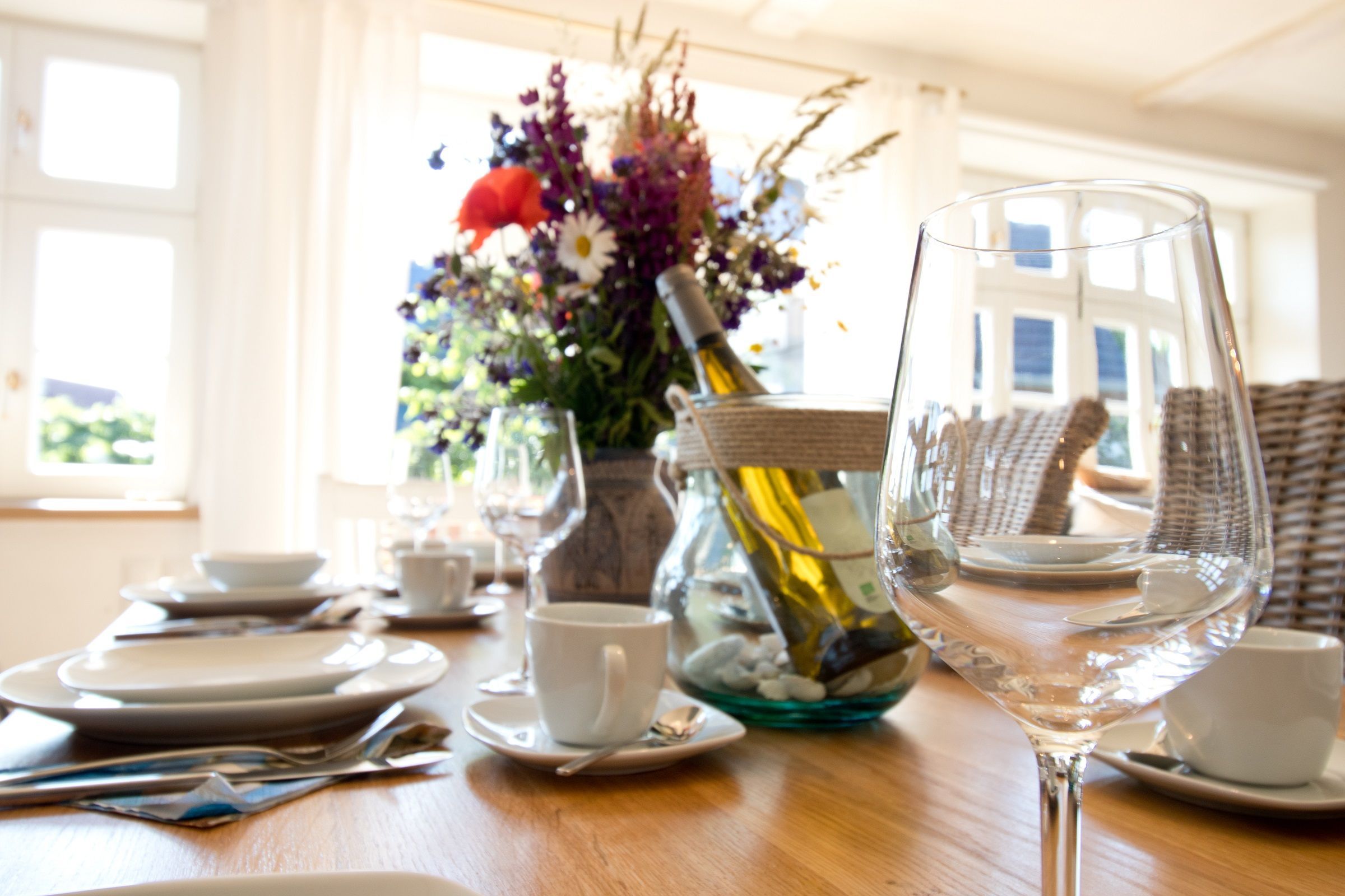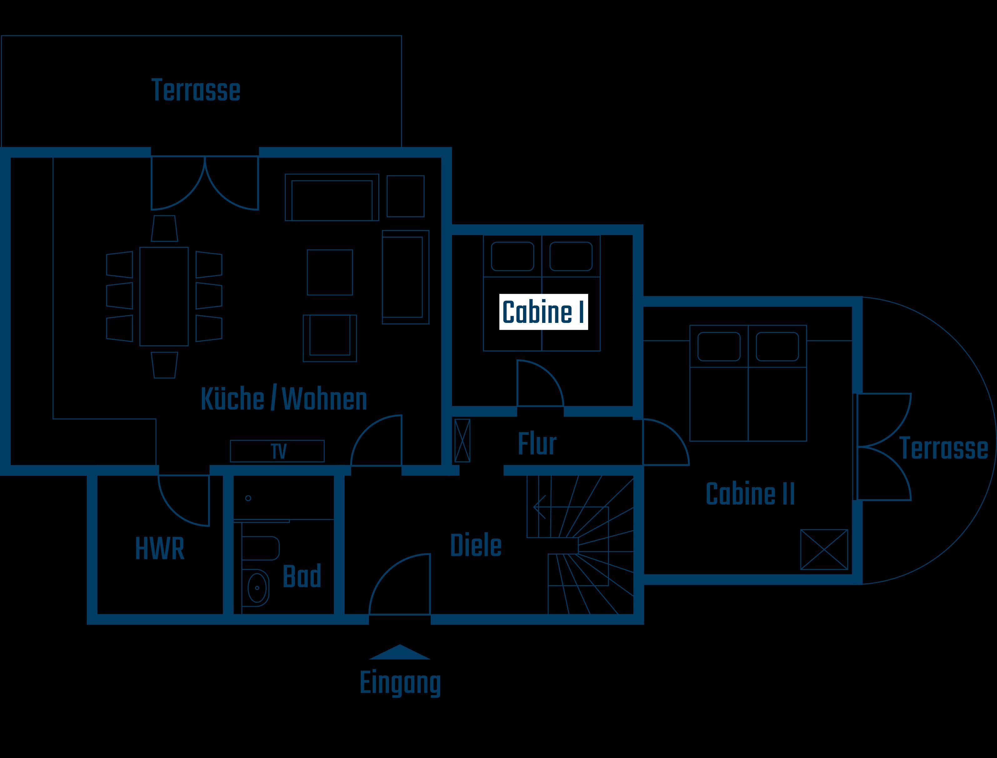 Erleben Sie großzügigen Komfort in unserem liebevoll gestalteten Wohn-/Essbereich, der mit originalen Darßer Fliesen und Eichen-Echtholzdielen ausgestattet ist. Genießen Sie wohlige Wärme durch die Fußbodenheizung oder entspannen Sie am Kamin, für den Ihnen kostenlos Holz zur Verfügung steht. Der helle Raum bietet direkten Zugang zur nordöstlich ausgerichteten Terrasse.