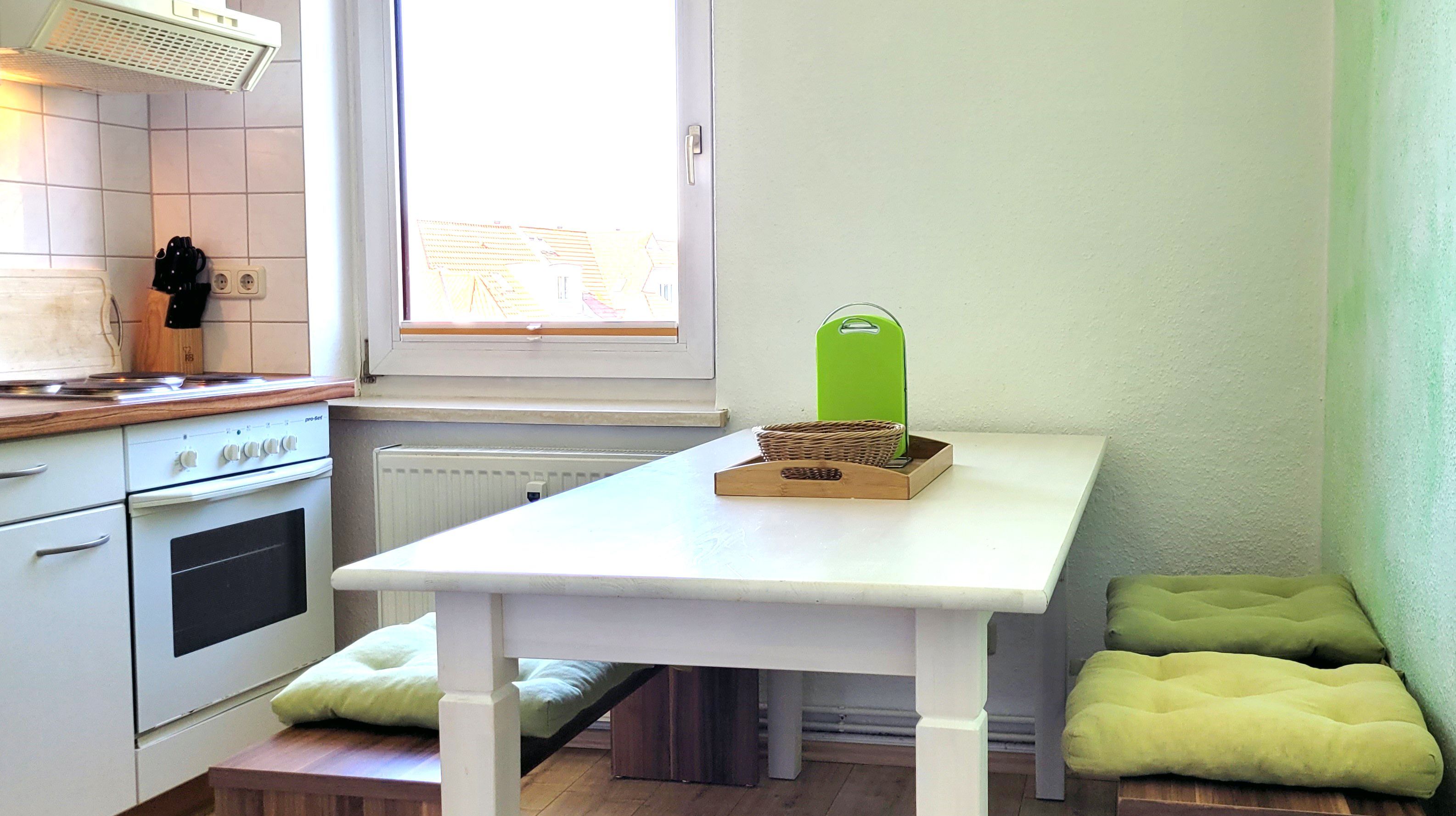 Die Küche ist voll ausgestattete mit Geschirrspülmaschine, Mikrowelle, Backofen, Kaffeemaschine, Toaster, Wasserkocher, Eierkocher, Brotschneidemaschine, Messerblock und 4-Plattenherd lädt zum Kochen und Beisammensitzen ein. Weiterhin bietet Ihnen diese Ferienwohnung ein Badezimmer mit Badewanne.