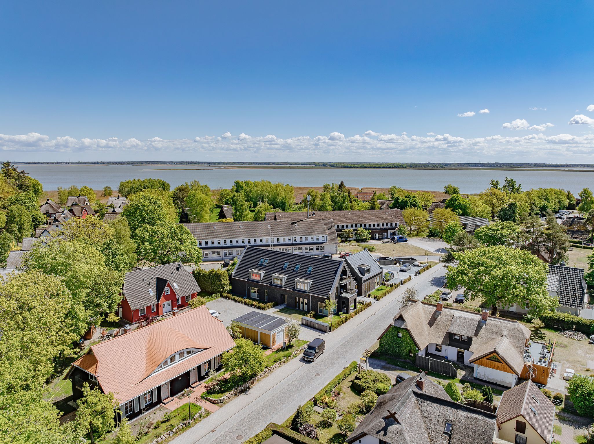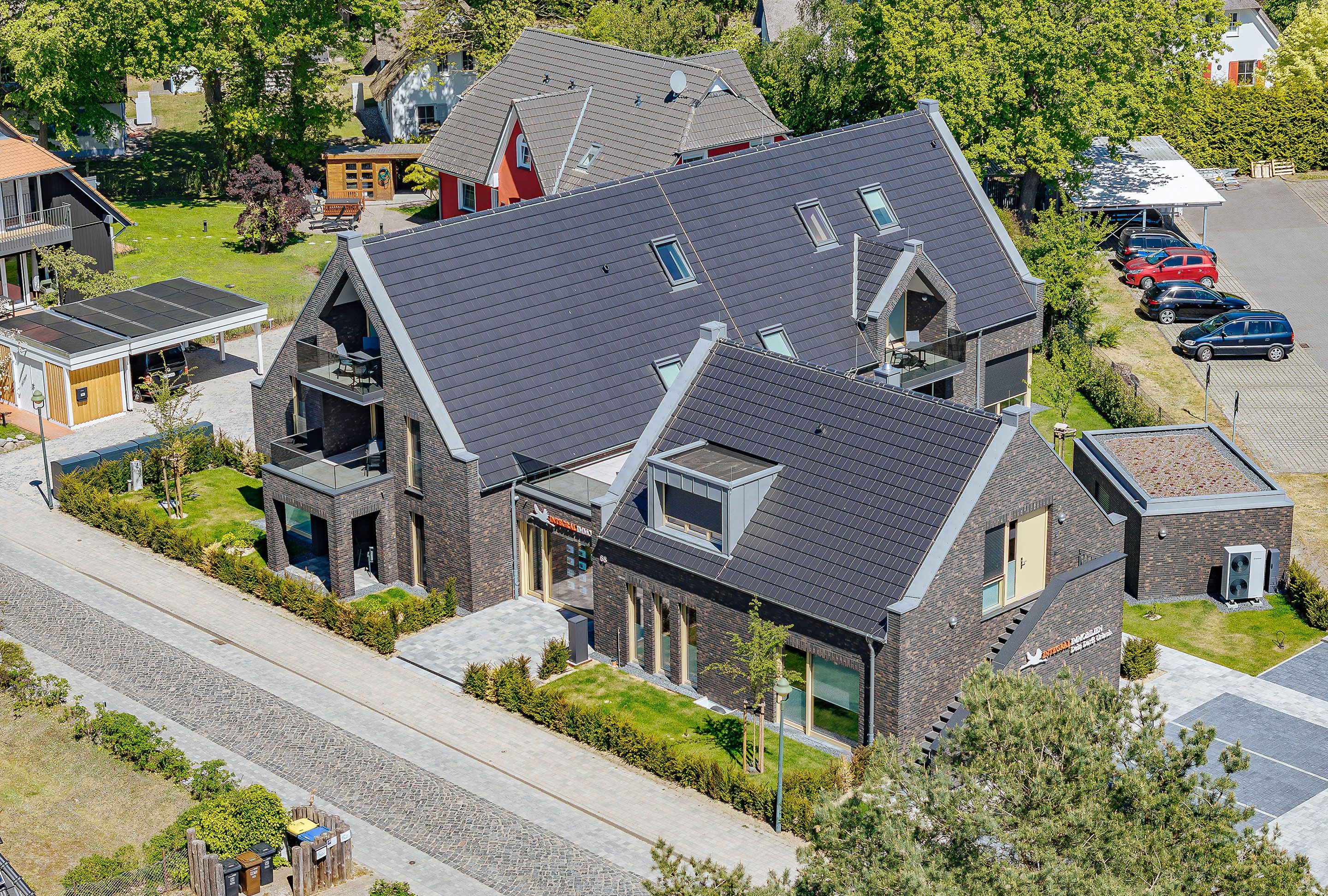Auf einem ca. 1278 m² großen Grundstück im schönen Seebad Born a. Darß ist unser neues Feriendomizil mit 5 Ferienwohnungen und einer Gewerbeeinheit entstanden. Die Wohnungen sind für 2 - 4 Personen geeignet. Die Grundrisse der jeweiligen Wohnungen, mit 73 m² - 99 m², sind sehr großzügig geschnitten. 4 der 5 Ferienwohnungen sind mit einer Sauna ausgestattet. Tageslichtbäder mit je einem großen Waschtisch, einer ebenerdigen Dusche, einer elektrischen Fußbodenheizung und einem Handtuchheizkörper sind Bestandteil der Ausstattung.