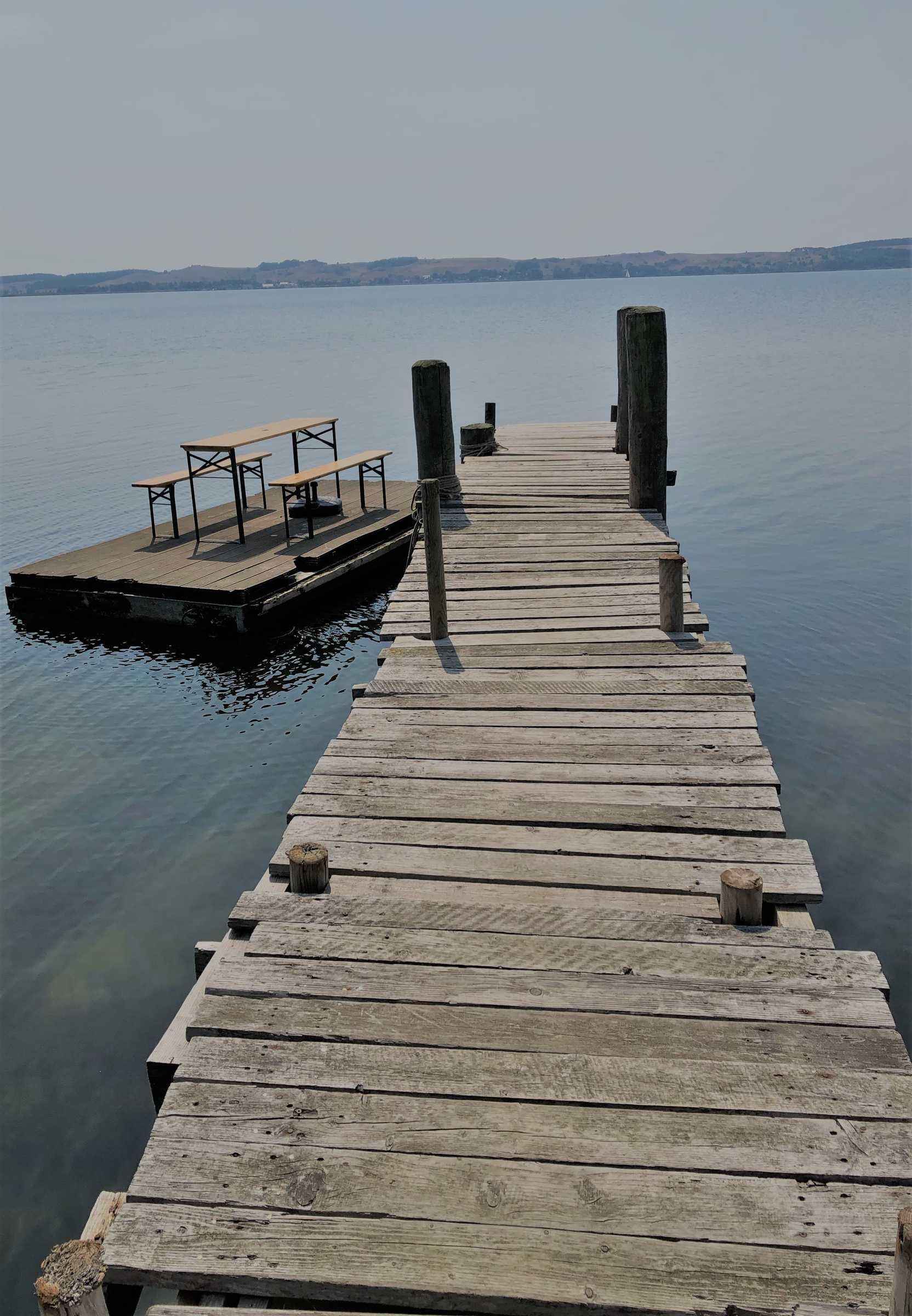 An besonders heißen Tagen lockt unser Holzfloß, das vor unserem Steg in den Wellen schaukelt. Holen Sie sich ein kühles Bier, machen Sie es sich bequem - und Prost!
