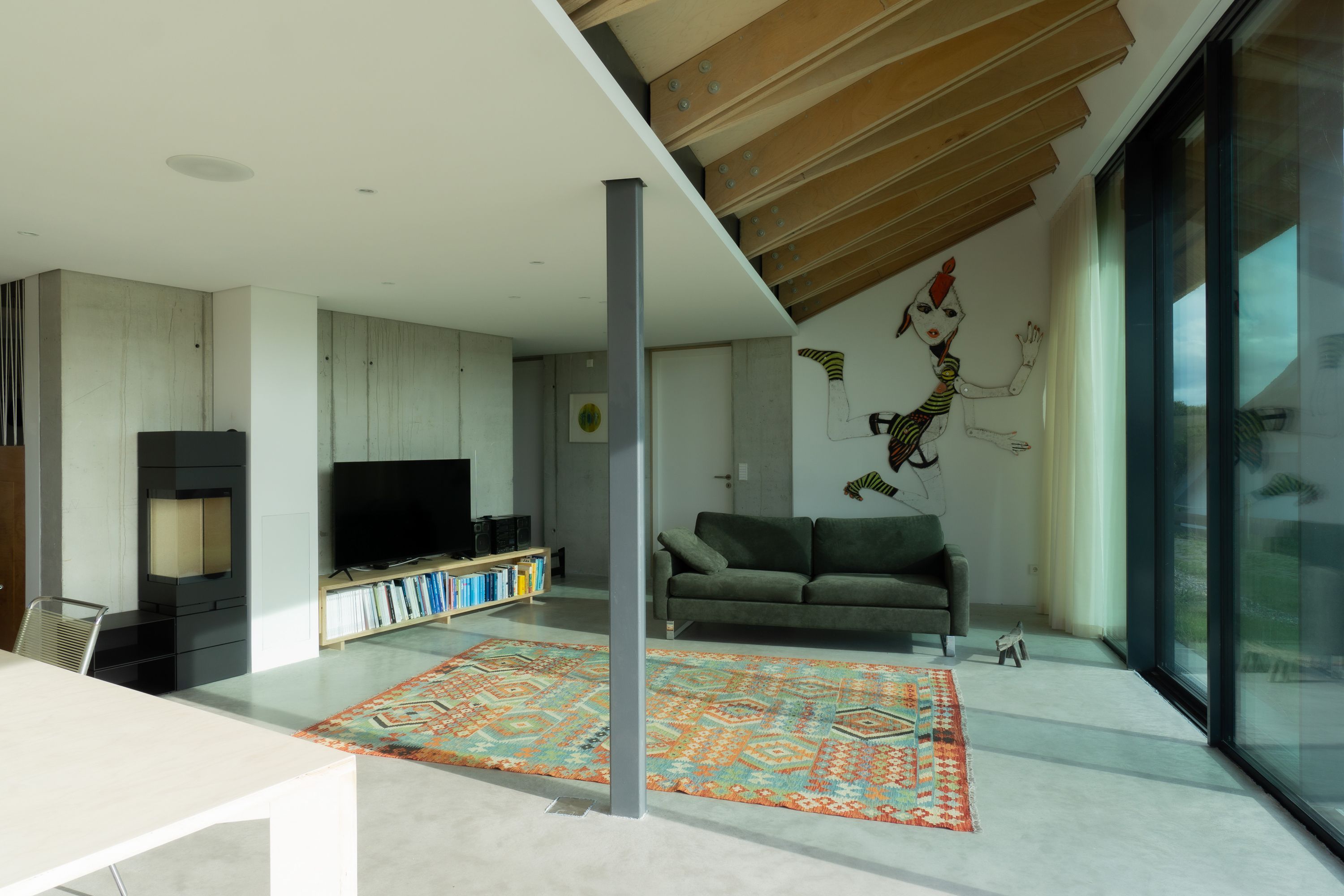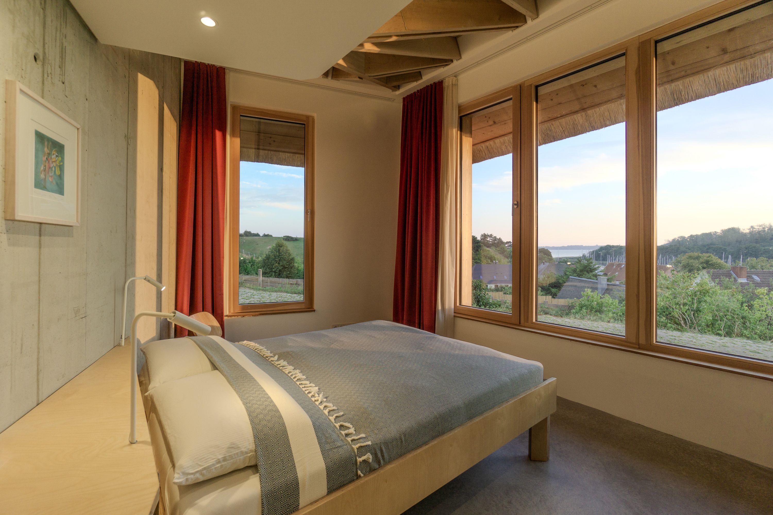 Die hochwertige Architektur des Hauses, inspiriert von den historischen Bootslagern der Fischer, verbindet modernes Design mit traditioneller Handwerkskunst. Im Inneren bleibt die tragende Struktur, die an die Spanten und Beplankung von Booten erinnert, sichtbar und schafft eine einzigartige Atmosphäre. Das Haus ruht wie auf einem Podest, sodass Sie von jeder Seite aus die atemberaubende Weite und Schönheit der Insel Rügen genießen können.