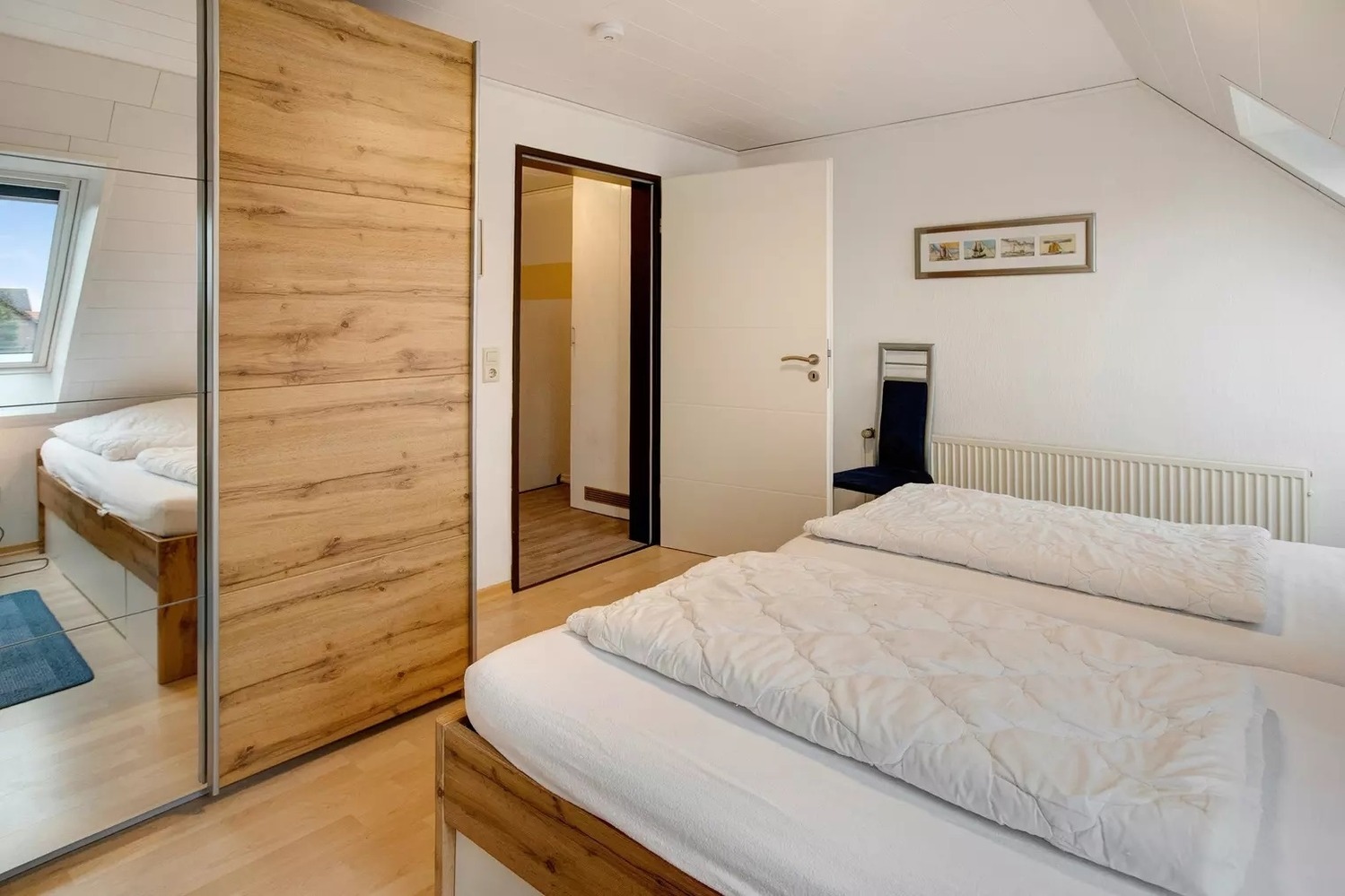 Schlafzimmer 2 hat 2 Einzelbetten.