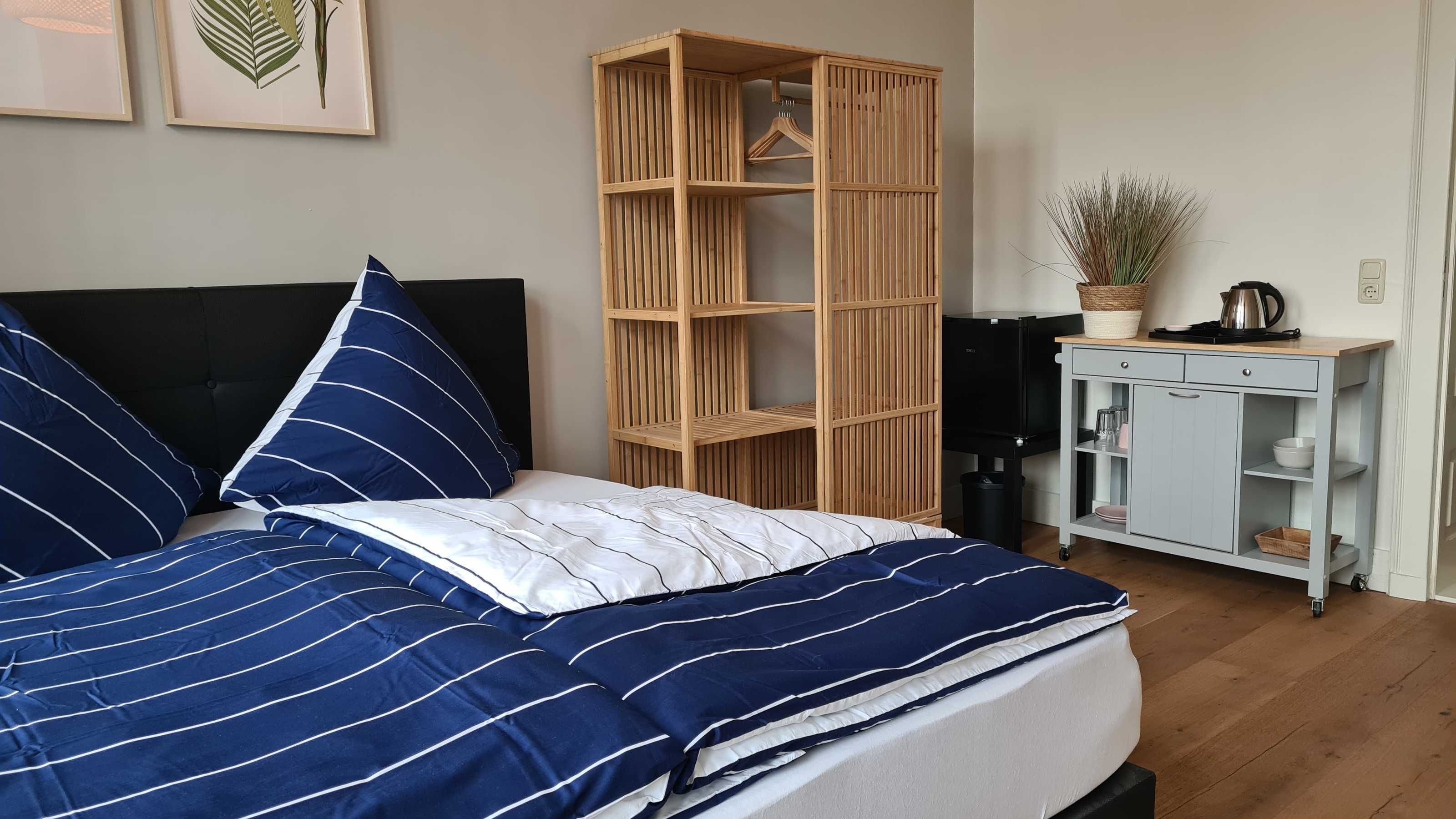 Alle Zimmer Nichtraucherzimmer mit Boxspringbett (Doppelbett), Flachbild-TV, Smart-TV, W-LAN, Bad mit Dusche oder Badewanne, WC. Minikühlschrank, Wasserkocher und Geschirr.