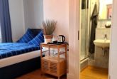 Alle Zimmer Nichtraucherzimmer mit Boxspringbett (Doppelbett), Flachbett-TV, Smart-TV, W-LAN, Duschbad/ WC, Minikühlschrank, Wasserkocher und Geschirr
