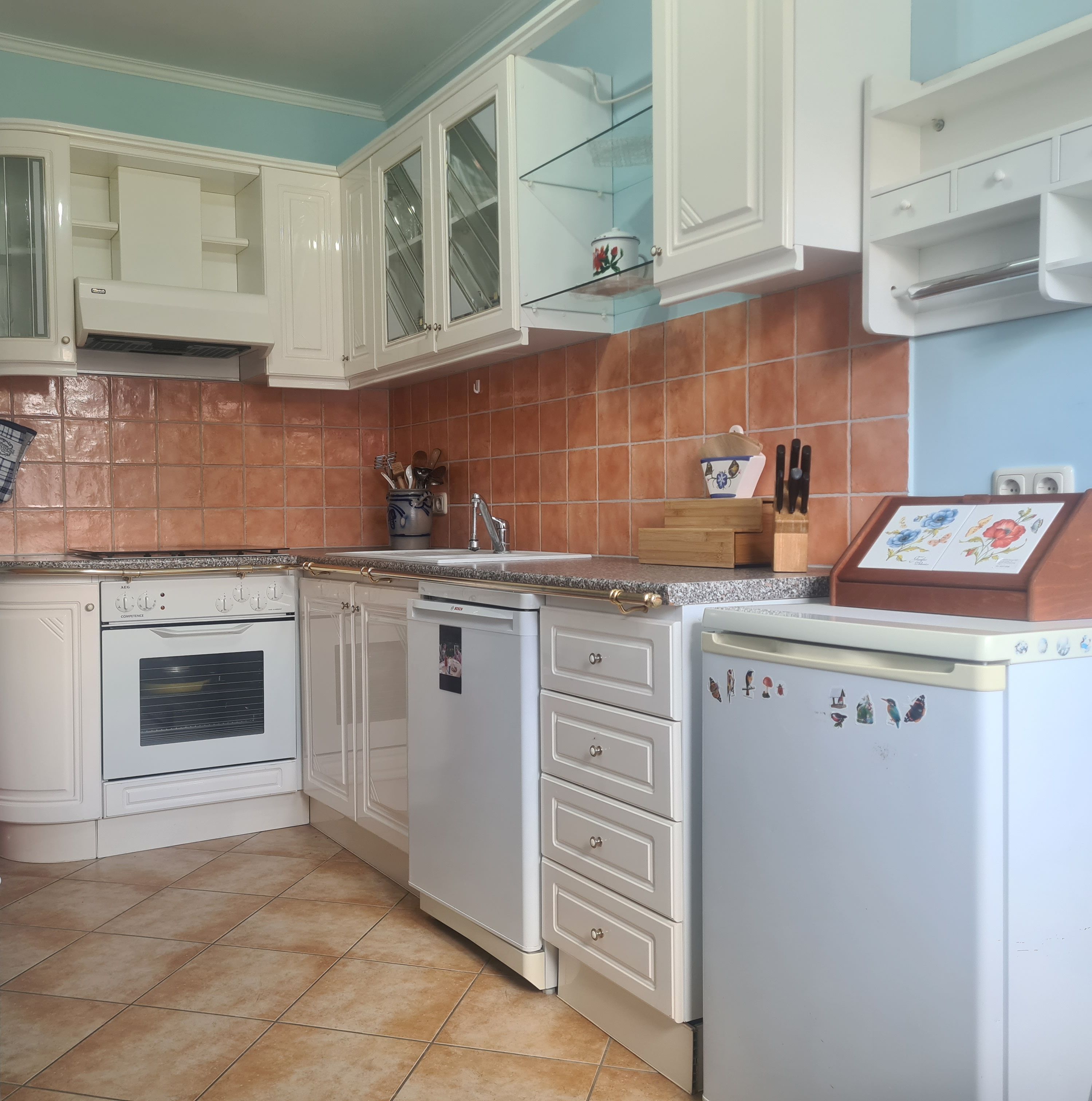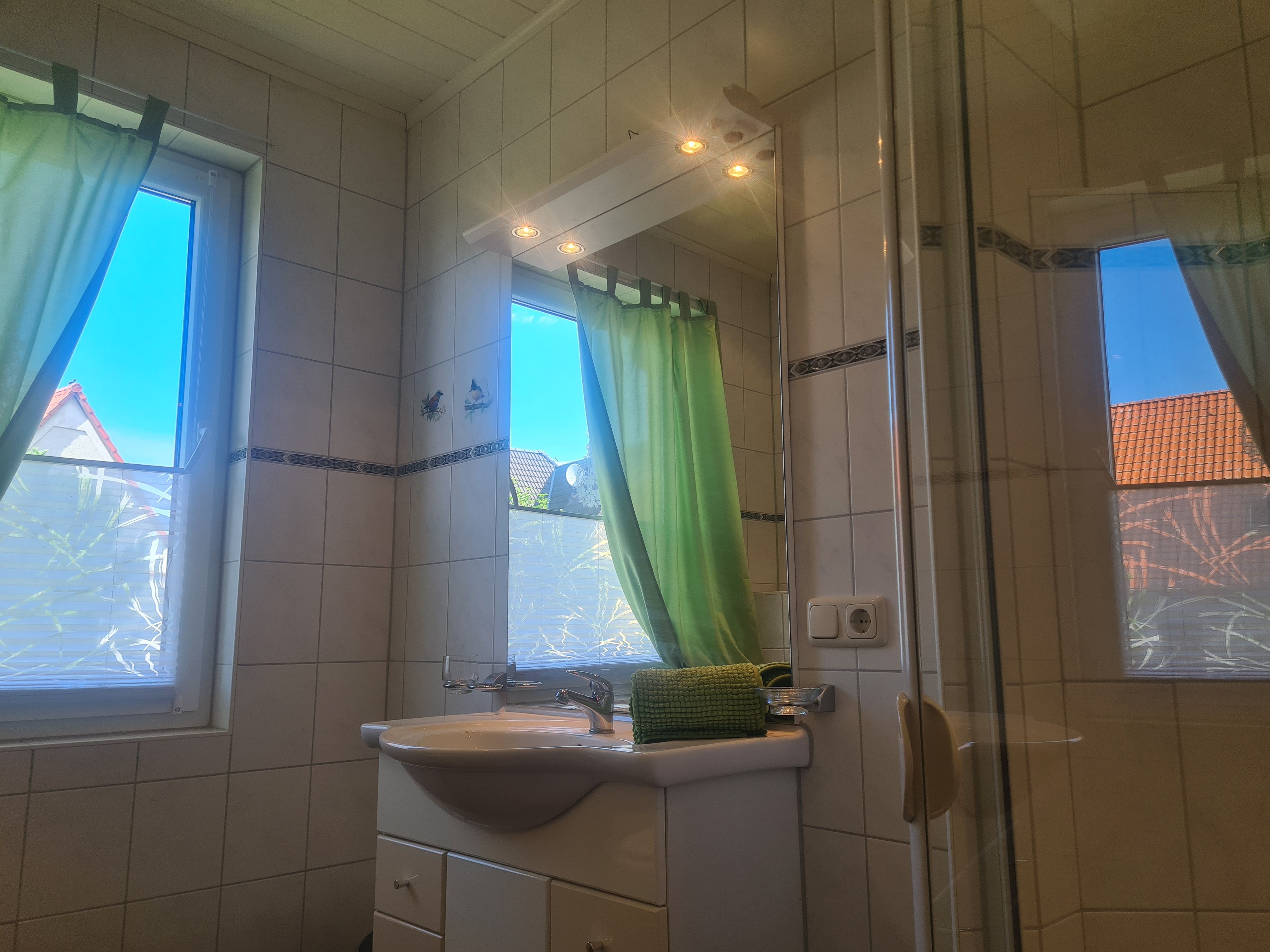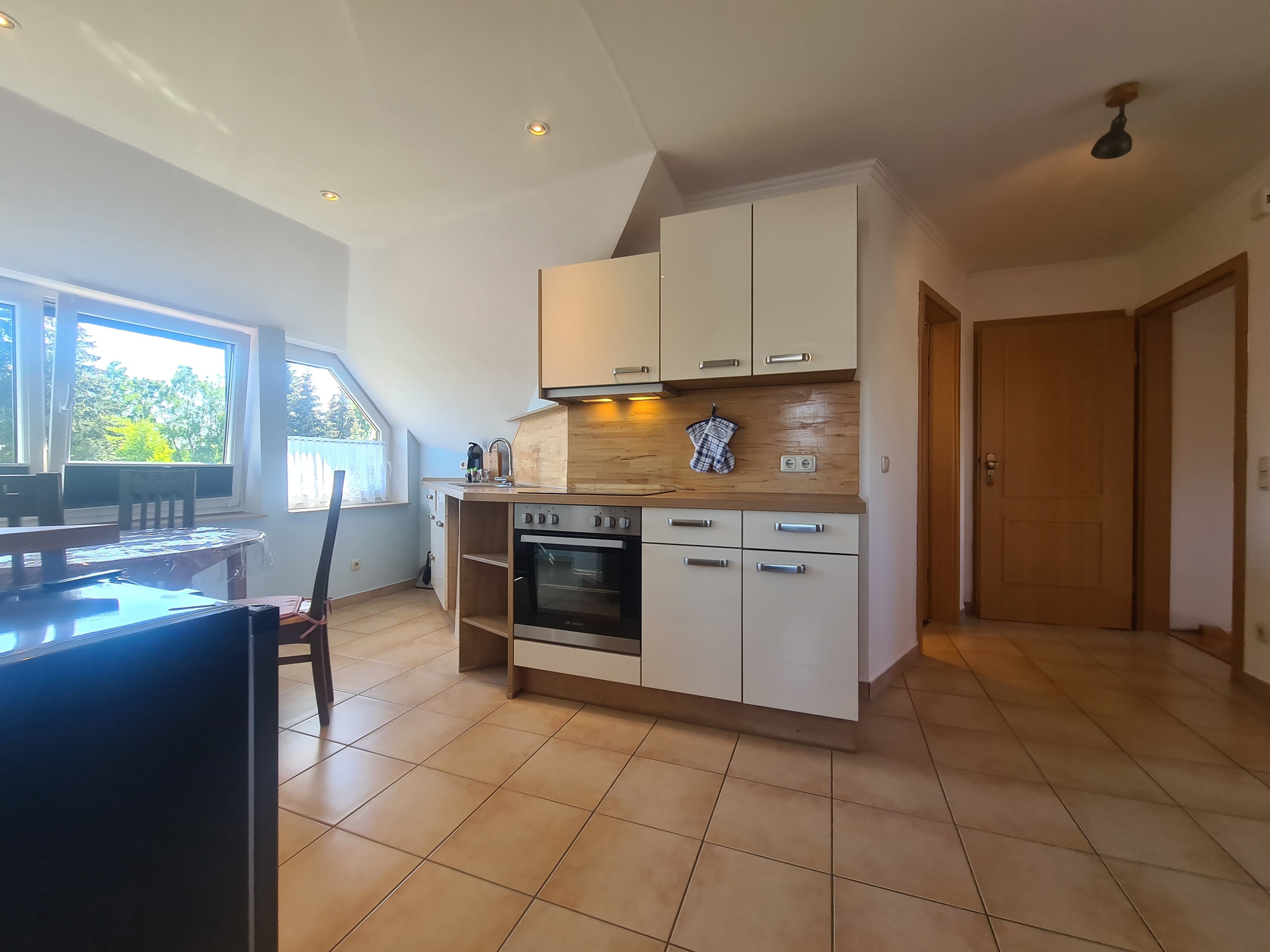 Erdgeschoss: Küche (Ceran-Herd, Backofen, Kaffeemaschine, Toaster, Wasserkocher, Kühl/Gefrierschrank). Ebenerdiges Duschbad/WC. Waschmaschine und Fußbodenheizung.