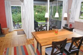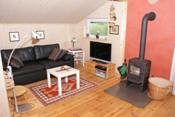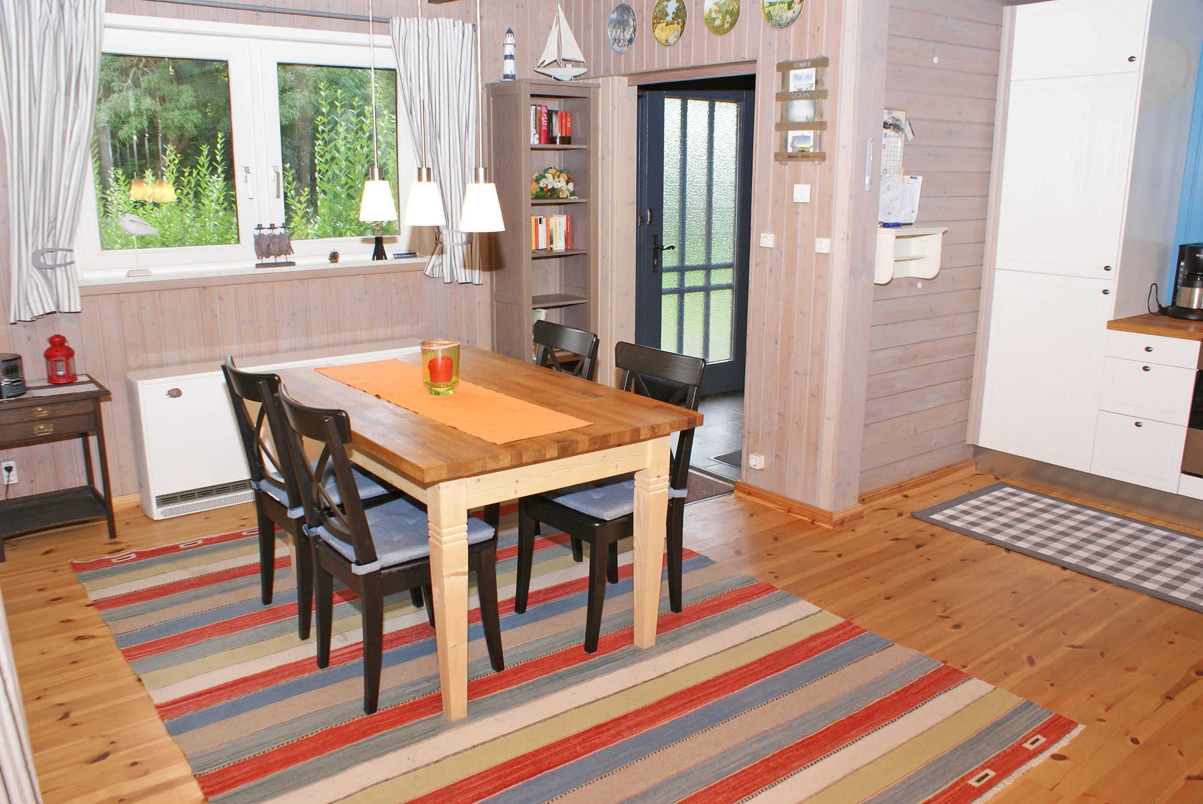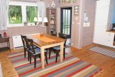 Wohnen auf einer Ebene. Zur Ausstattung gehört eine vollwertige Küche (mit Geschirrspüler), 2 getrennte Schlafzimmer, Flur, Bad mit Dusche und Wohnzimmer mit Essecke. Der Kamin im Wohnzimmer steht den Gästen zur Verfügung. Die Terrasse erreichen Sie über das Wohnzimmer. Bei diesem Haus haben Sie zwei Terrassen.