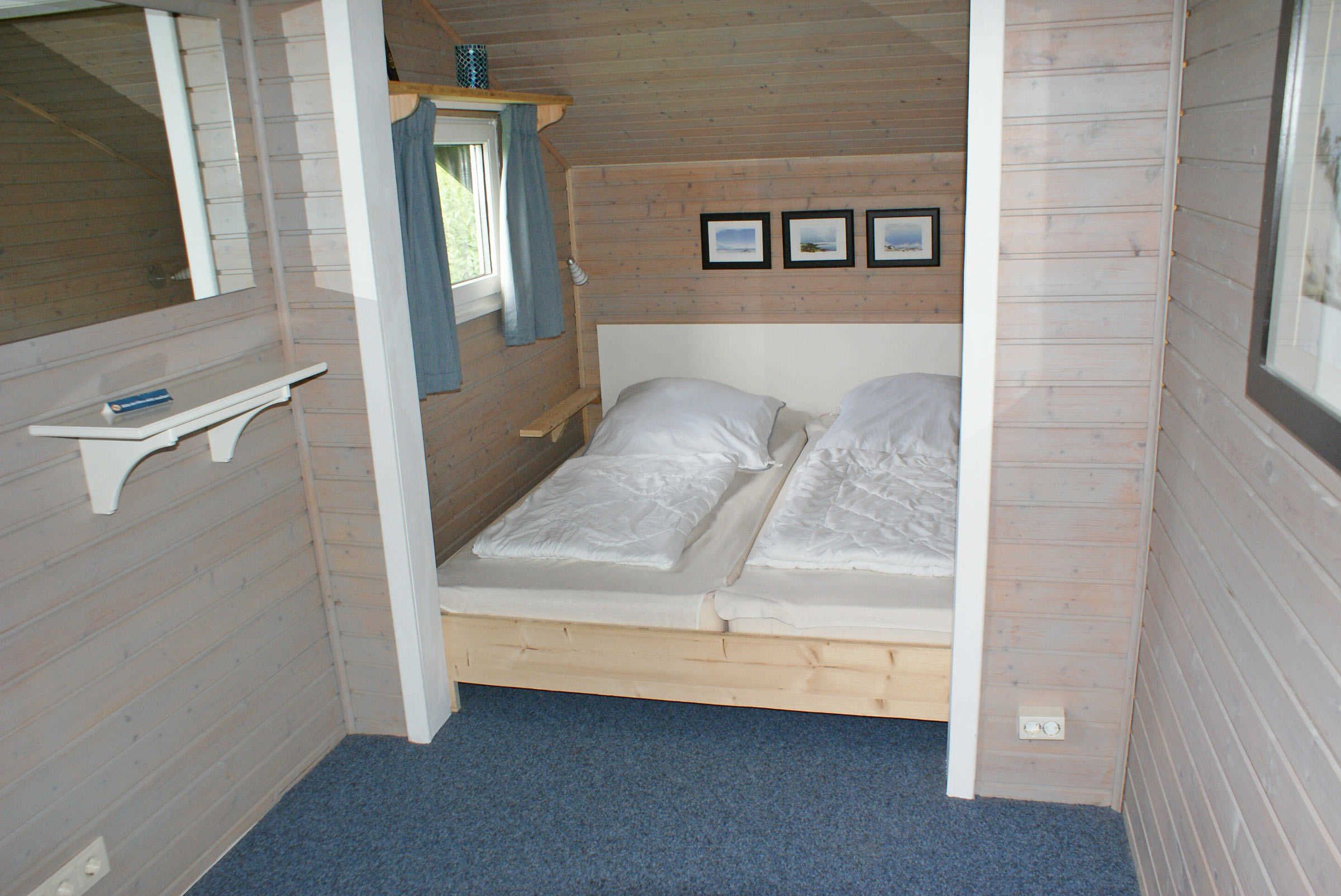 Unser Blockhaus verfügt über zwei getrennte Schlafräume, kombiniertes Wohn- und Esszimmer, vollwertige Küche und Terrasse. Ein Kinderreisebett und Kinderhochstuhl sind immer vorhanden und kostenlos nutzbar.
