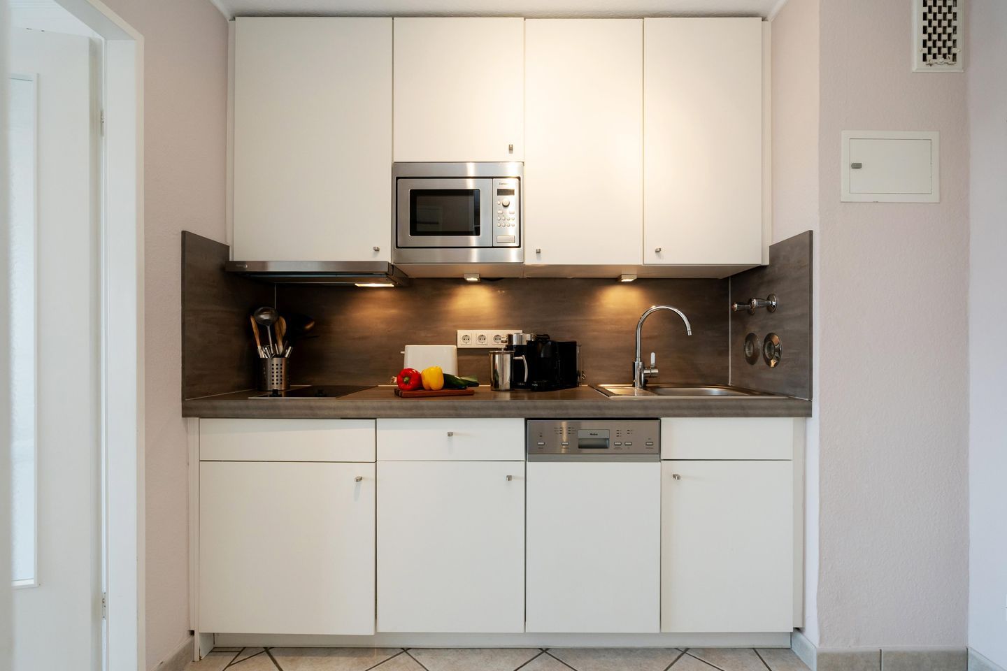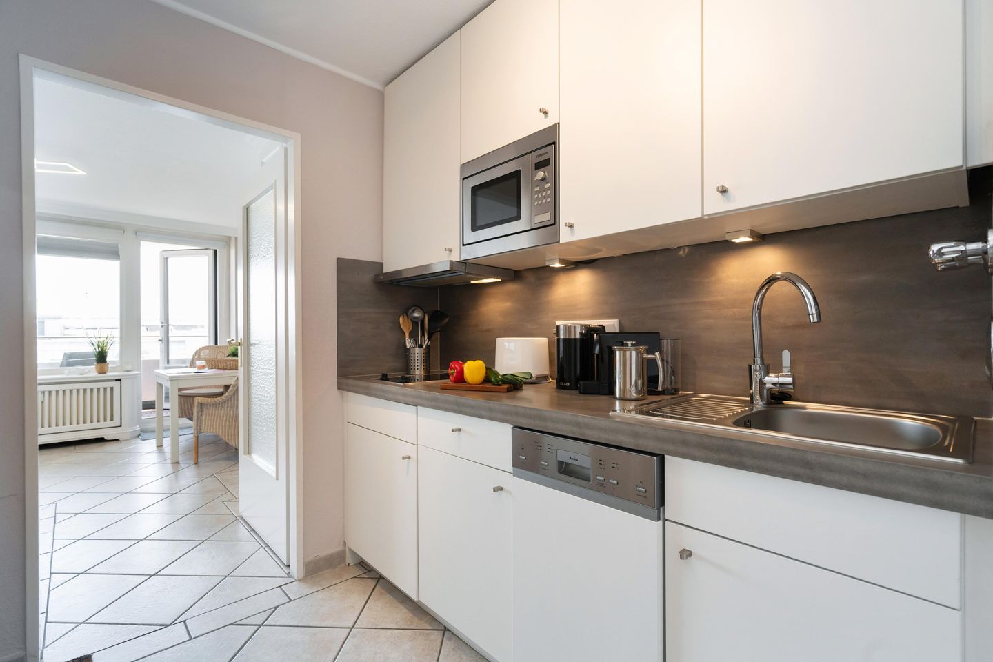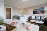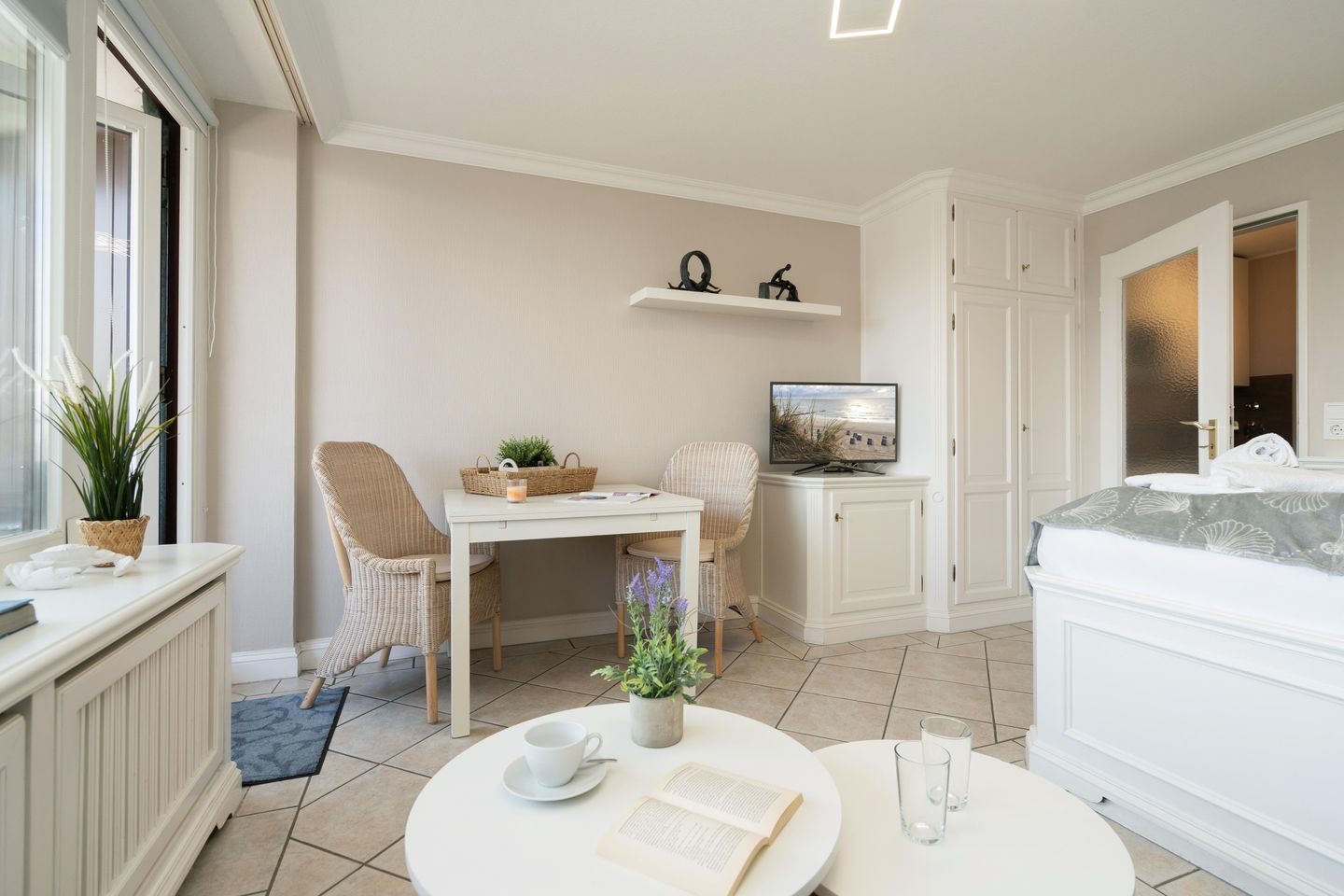 Das moderne ca. 30 m² große 1-Zimmer App. Küstenmuschel für 1-2 Personen befindet sich im 3.OG und bietet Ihnen eine gute Ausstattung in direkter Stadt- und Strandlage (Landseite), unweit entfernt vom Strandübergang der Westerländer Promenade. Die Küchenzeile inkl. Cerankochfeld, Kühlschrank, Mikrowelle und Geschirrspüler ist gut ausgestattet. Der angrenzende Wohn- und Schlafbereich mit Podestdoppelbett (160x200 cm) und Essbereich lädt zur Entspannung ein. Das Vollbad inkl. Badewanne samt Duschvorrichtung ist mit einem Haartrockner ausgestattet. Nutzen Sie gerne den sonnendurchfluteten Frühstücksbalkon inkl. Balkonmöbel. Ein Haus internes WLAN sowie ein Fahrstuhl sind vorhanden. Haustiere sind willkommen. Im Kellergeschoss stehen Ihnen Waschmaschinen und Wäschetrockner (gebührenpflichtig) zur Verfügung.