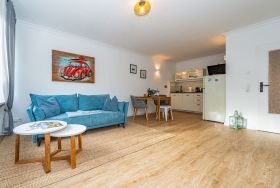 Zwei Flachbild-TVs (darunter ein smartes Modell im SZ und einer mit Apple TV 4k im WZ) und eine mobile Musikbox mit Bluetooth schaffen die perfekte Atmosphäre für entspannte Abende. Kostenloses WLAN sorgt dafür, dass Ihr auch im Urlaub online bleiben könnt.