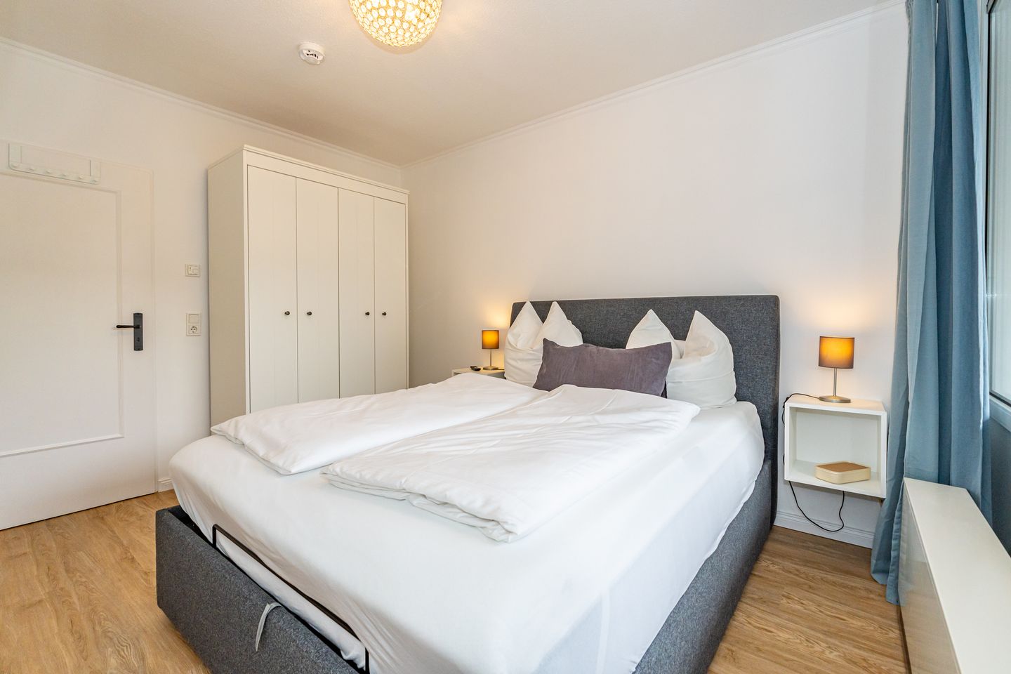 Im Schlafzimmer erwartet Euch ein traumhaftes Boxspringbett (160x200), das süße Träume verspricht. Und keine Sorge, mit den gebuchten Wäschepaketen sind die Betten schon für Euch bezogen. Darüber hinaus sind zwei Duschtücher, zwei Handtücher, eine Duschmatte, ein Küchentuch pro Person vorhanden.